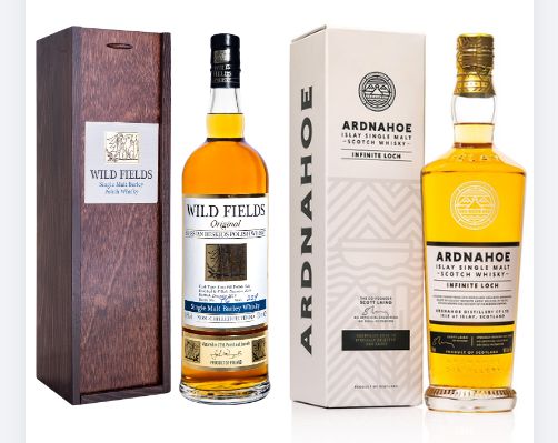 Wild Fields Single Malt 100% Barley Polish Whisky in wooden box 0,7L 46,5% Ardnahoe Islay Single Malt Scotch Whisky Infinite Loch 0,7L 50% Zestaw; Zapraszamy do licytacji zestawu dwóch wyrafinowanych whisky single malt: Wild...