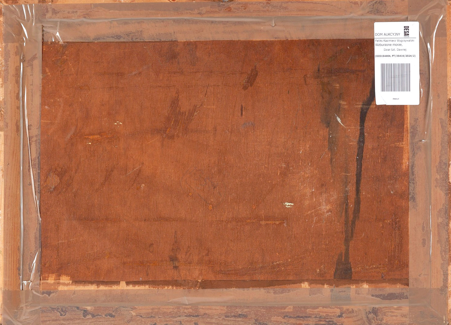 Na odwrocie odręczny napis czarnym flamastrem: „Potwierdzam autorstwo tego obrazu/ mojego ojca- Władysława Serafina/Wojciech Serafin/Kraków dn.3.08.2015r.
