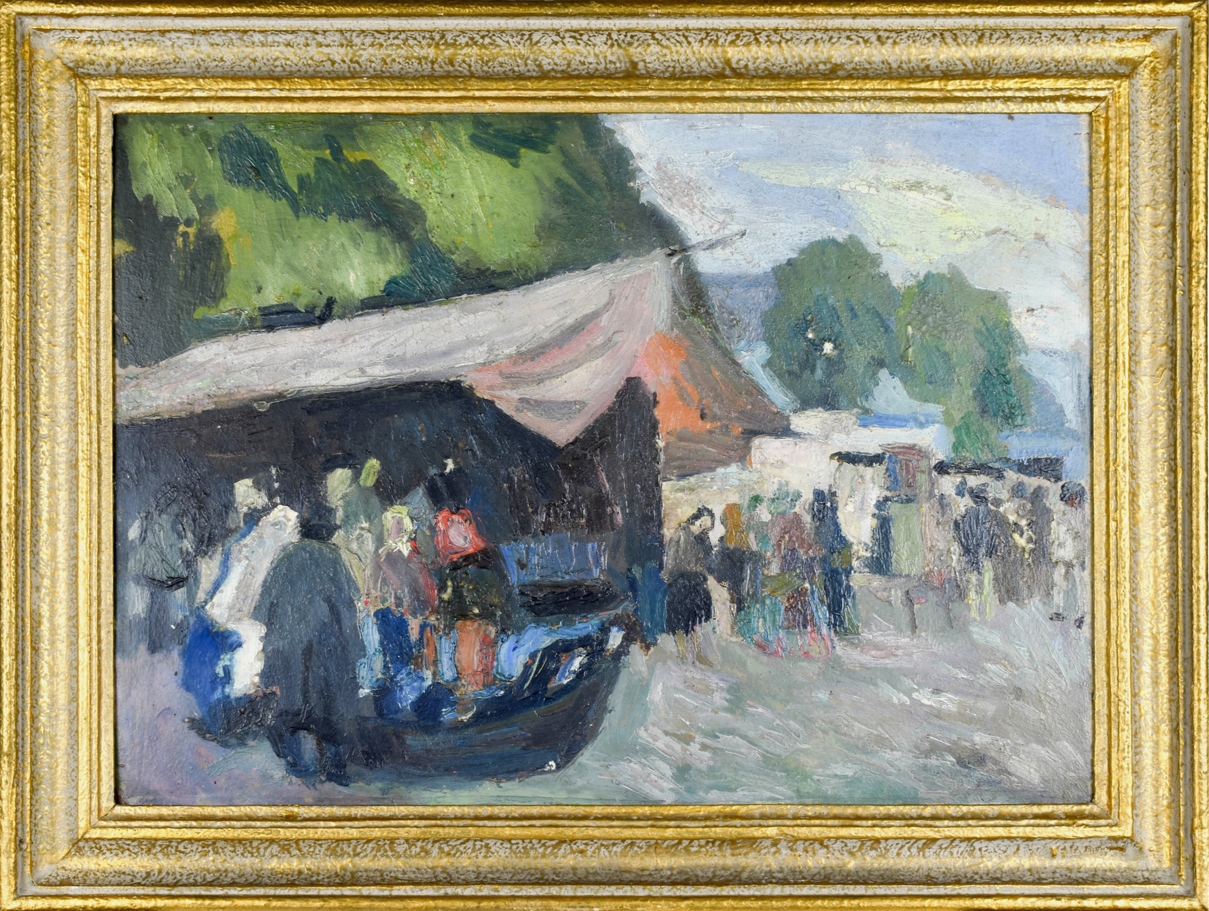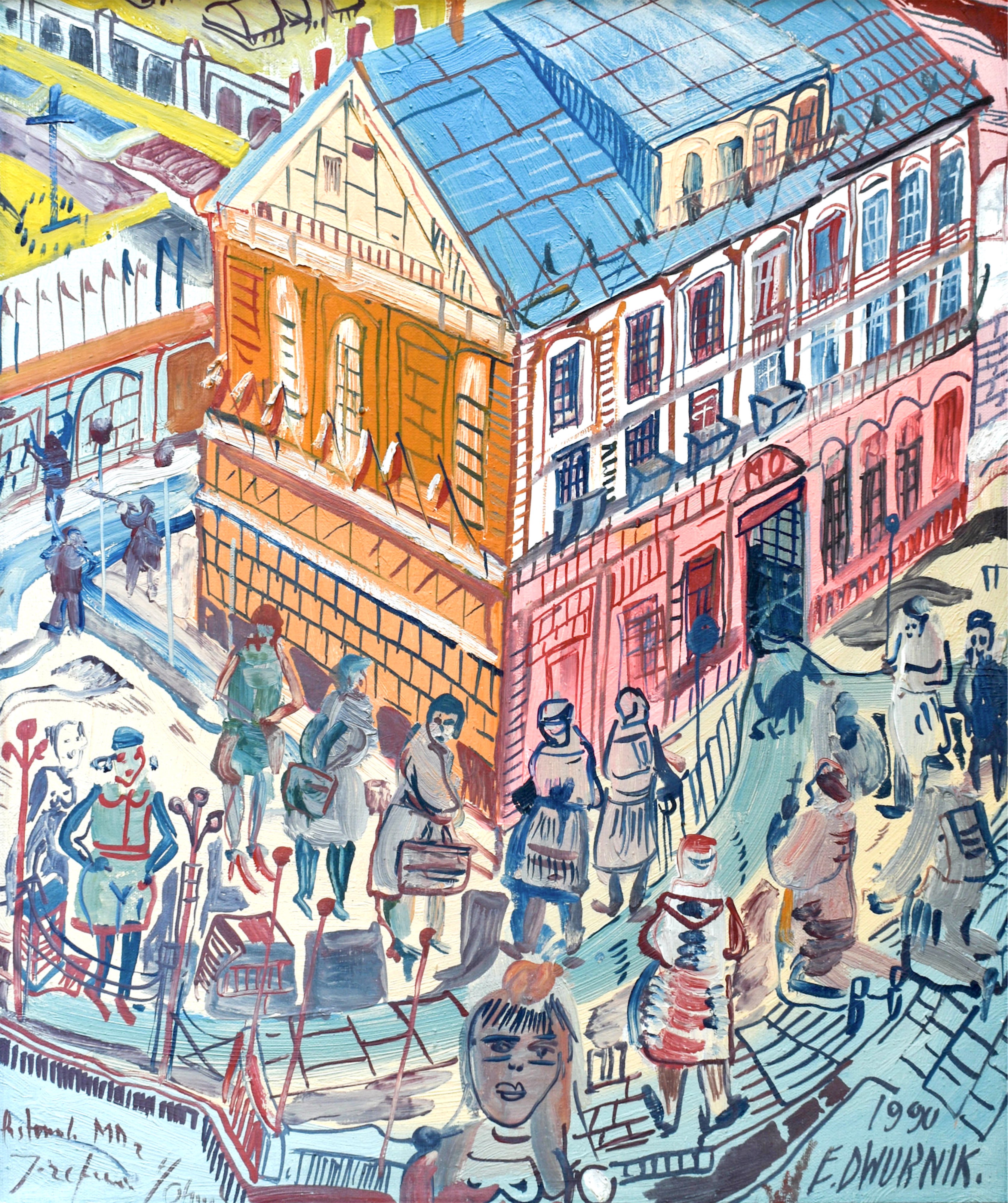 Sygnowany i opisany autorsko na odwrociu: S. KAMOCKI / "JARMARK W KROŚCIENKU" / CZERWIEC / 1932 (czerwoną kredką).