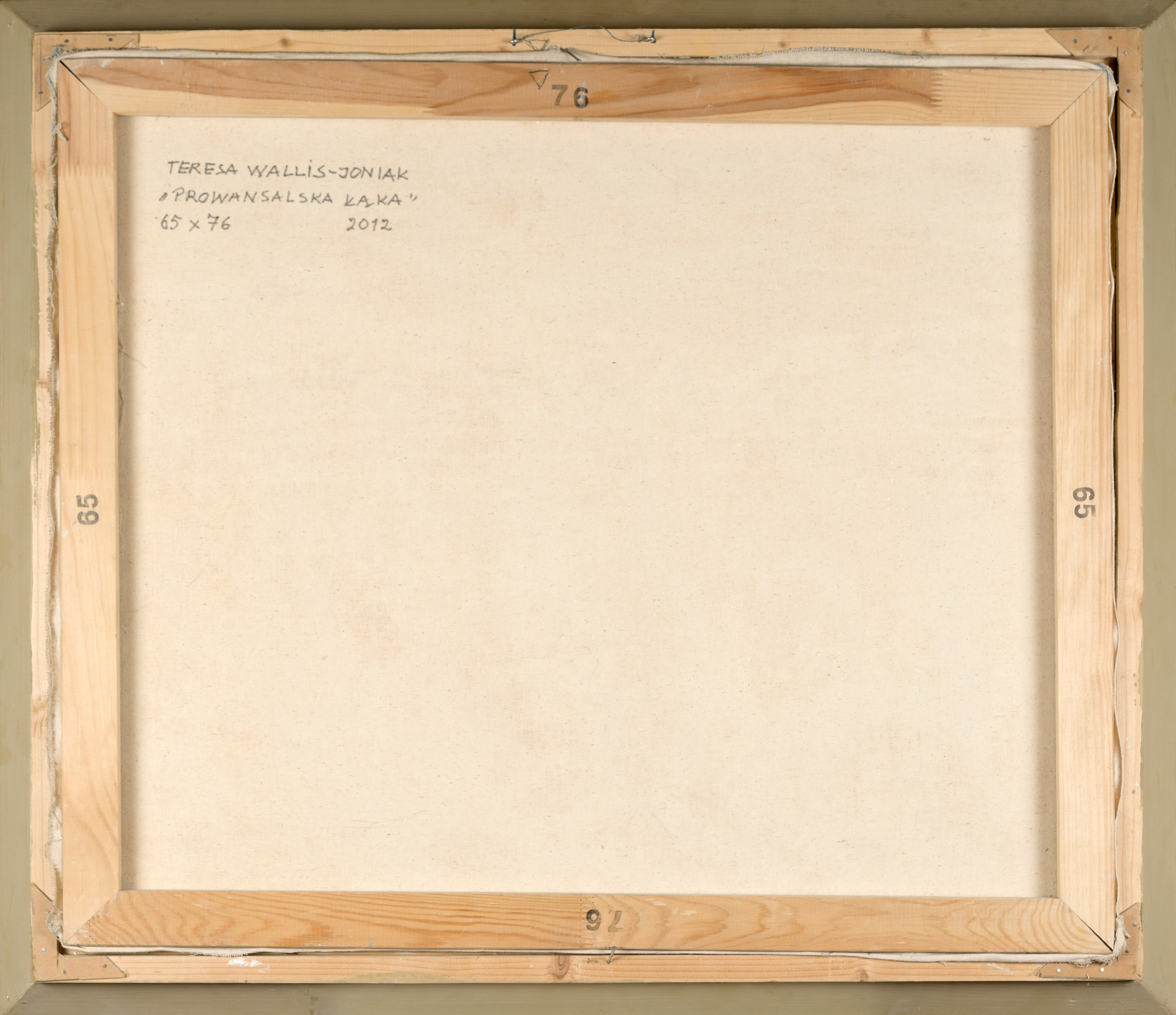Opisany autorsko na odwrocie: TERESA WALLIS-JONIAK / „PROWANSALSKA ŁĄKA” / 65 x 76 / 2012.