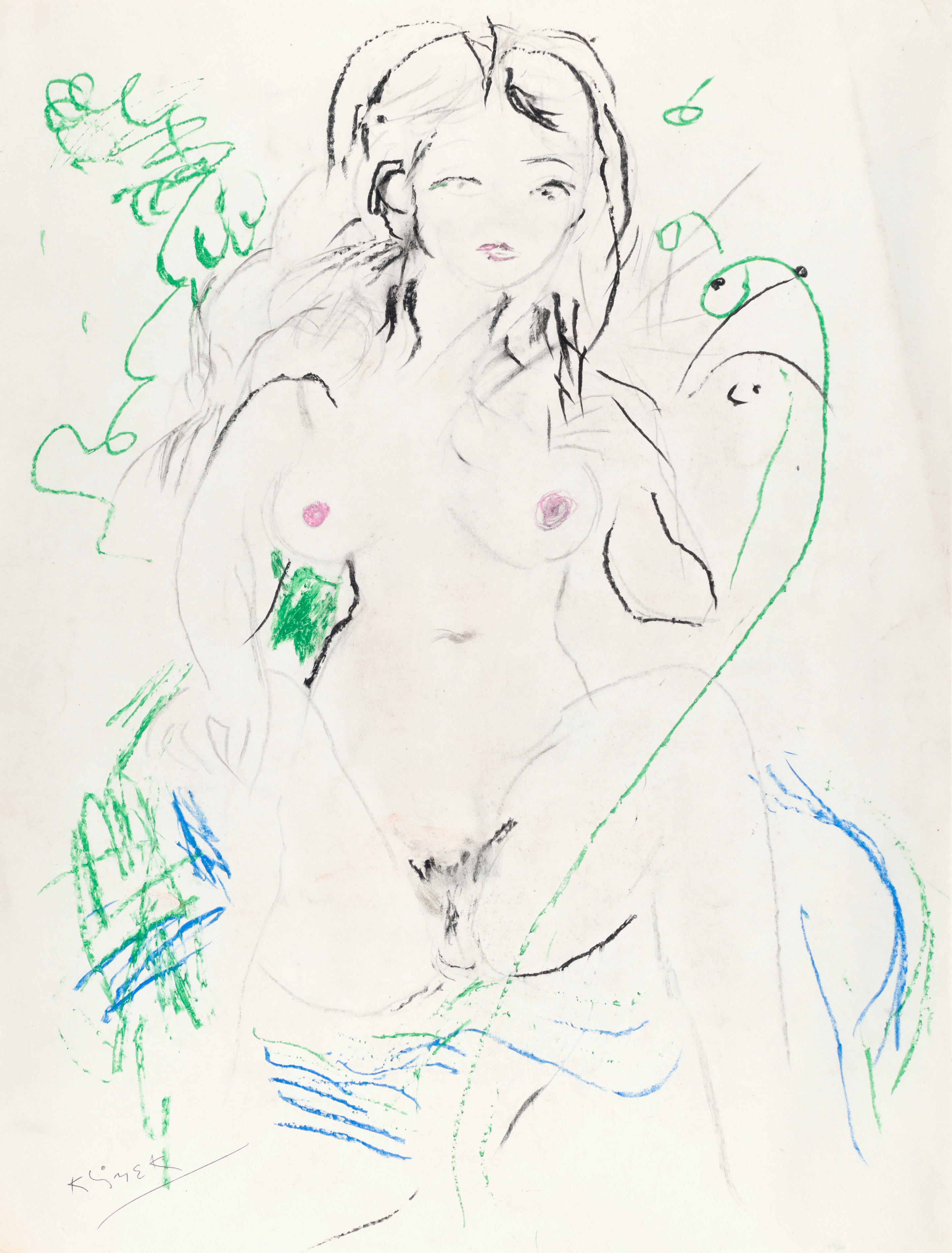 technika mieszana: kredki, węgiel, papier; 64 x 48,5 cm (w św. passe-partout);