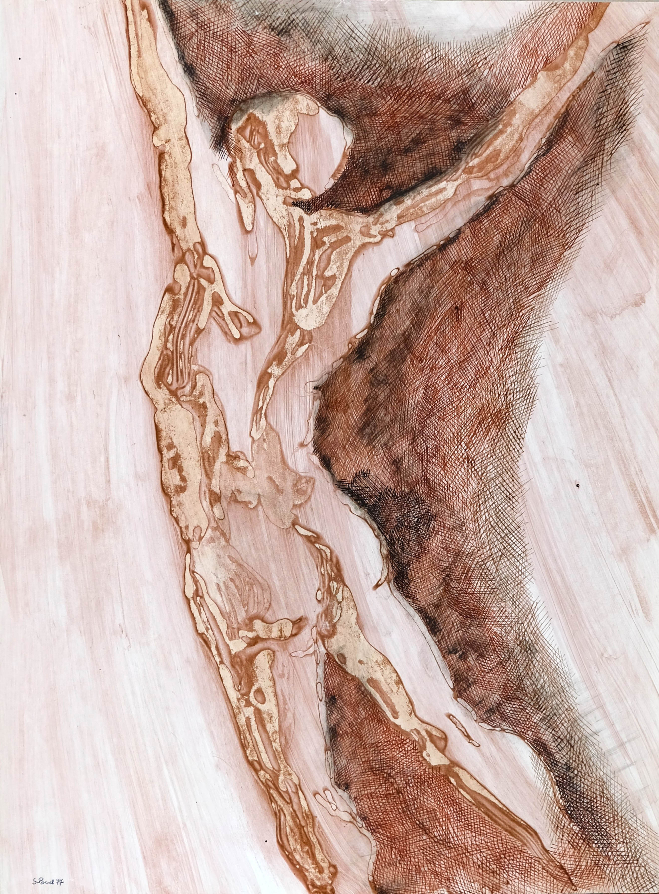 technika mieszana (technika własna, tusz, akwarela), papier, 43 x 32 cm,