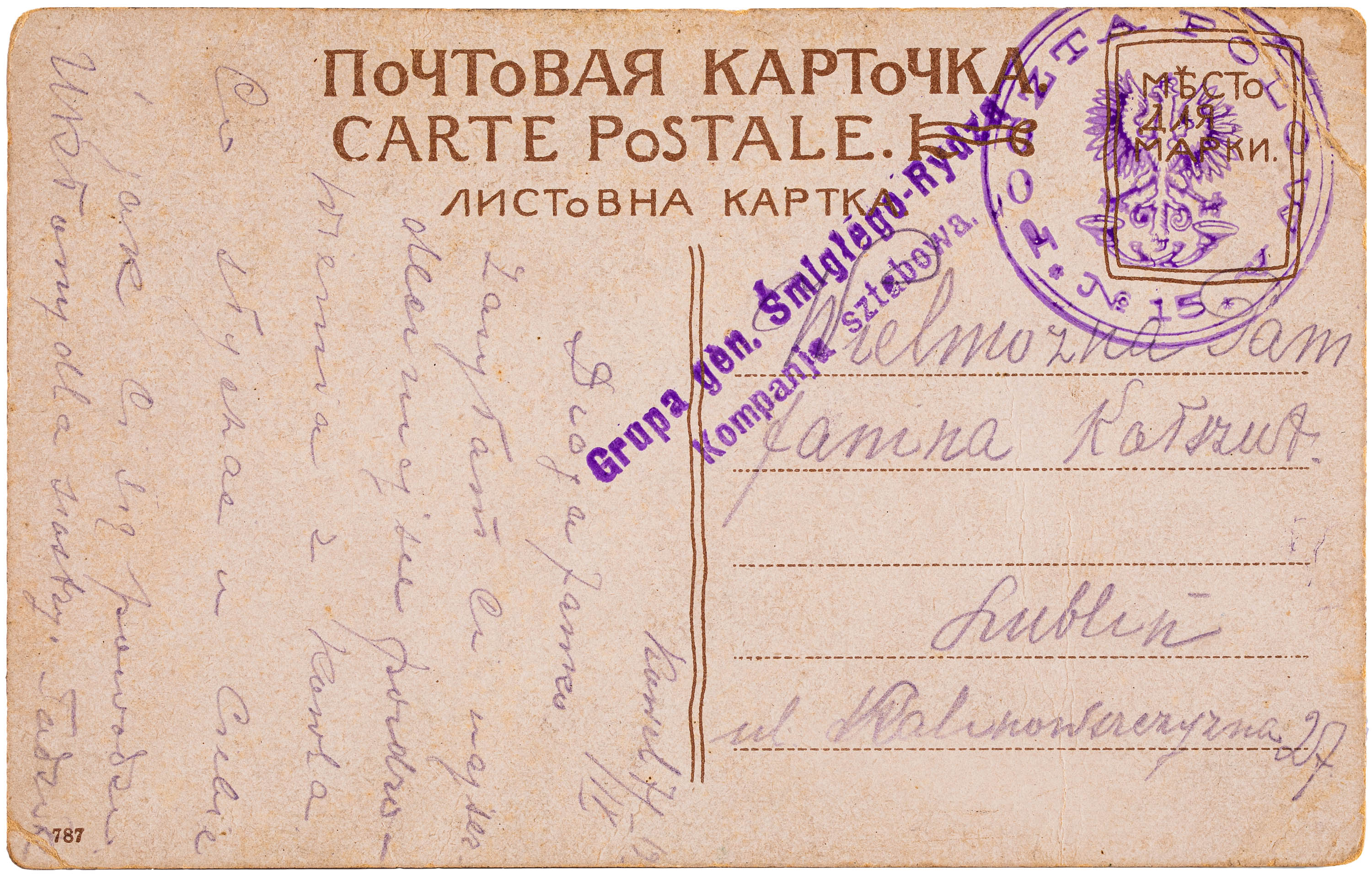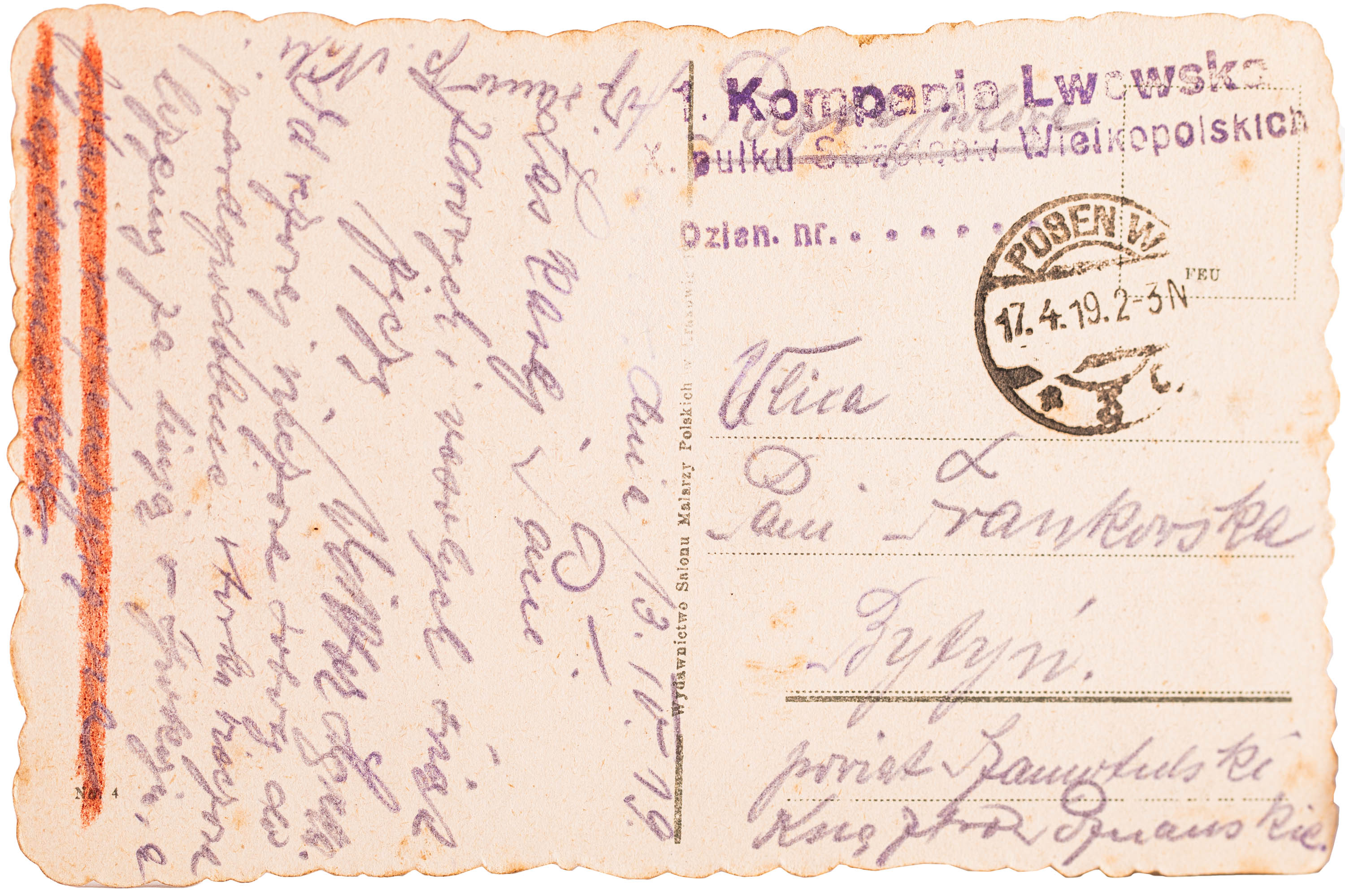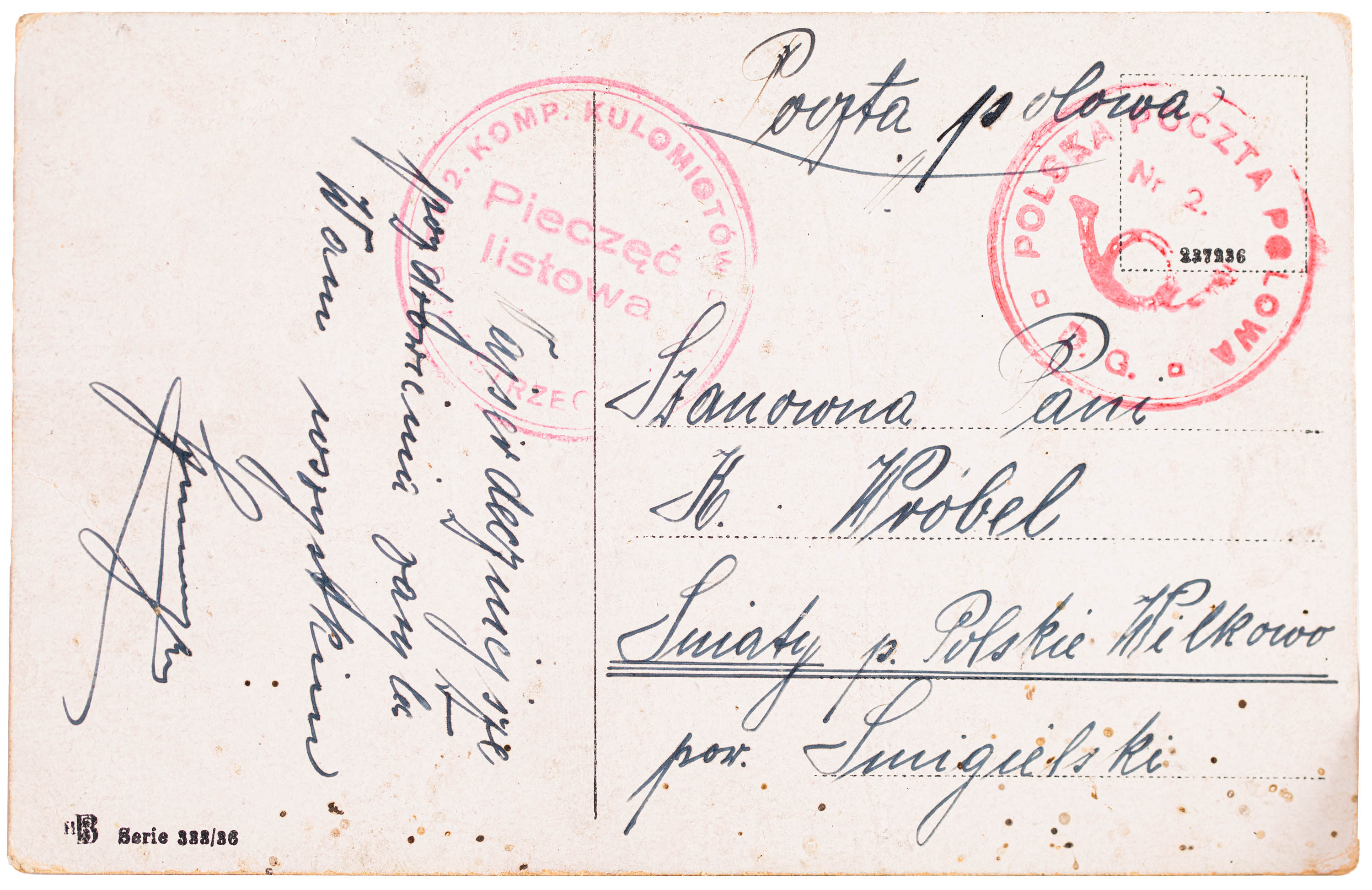 Zbiór obejmuje pocztę polową w trakcie Powstania Wielkopolskiego i po zawieszeniu broni do Traktatu Wersalskiego oraz dalej, do jego ratyfikacji przez Niemcy 10 stycznia 1920 r. Kolekcja składa się ze 191 całości pocztowych i 2...