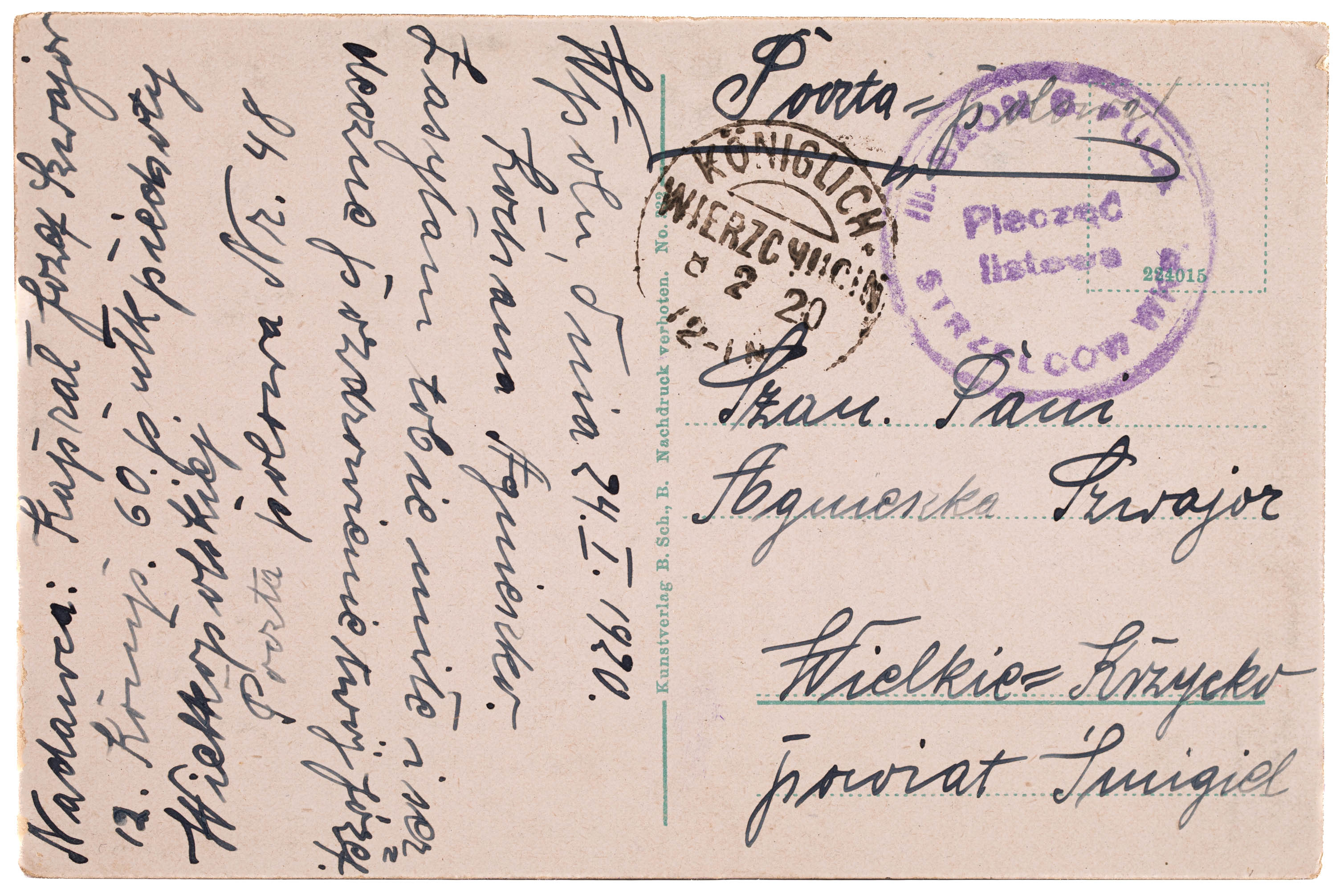 Zbiór obejmuje 92 całości pocztowe, z czego 89 z roku 1920 i 3 z roku 1921.