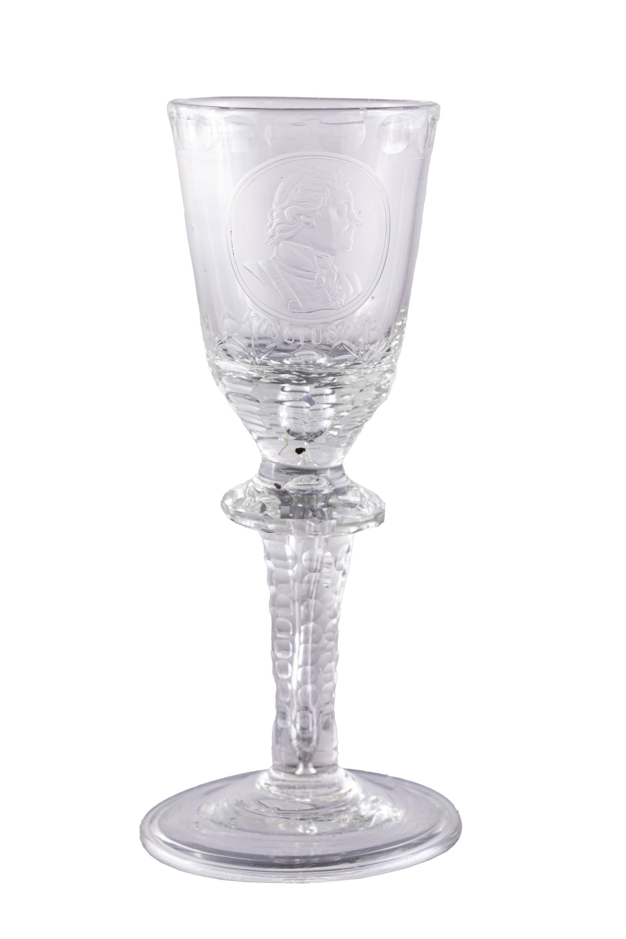szkło bezbarwne, szlifowane, rytowane, wys. 17,5 cm