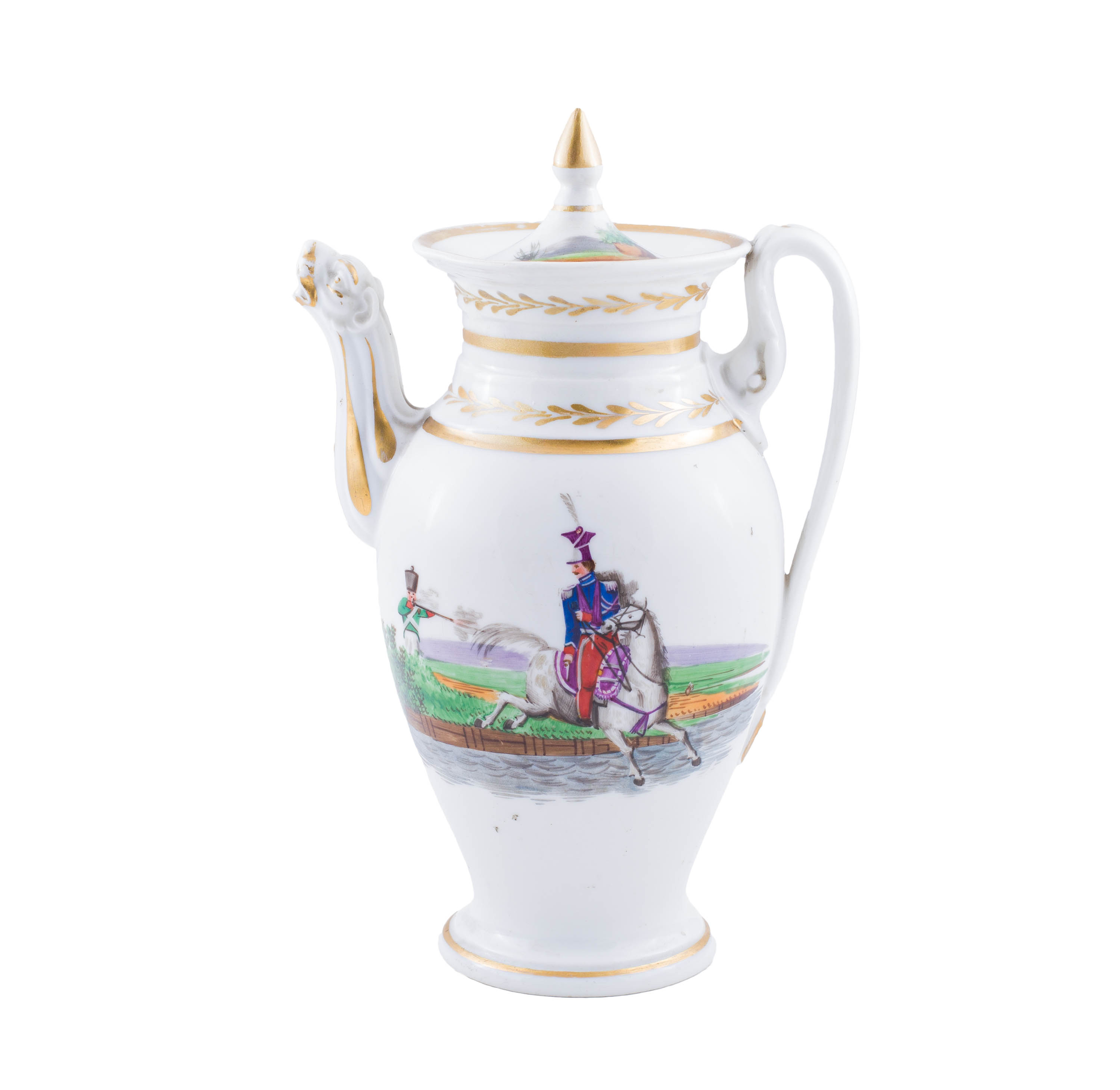 porcelana szkliwiona, malatura, złocenia, wys. dzbanka 24,5 cm