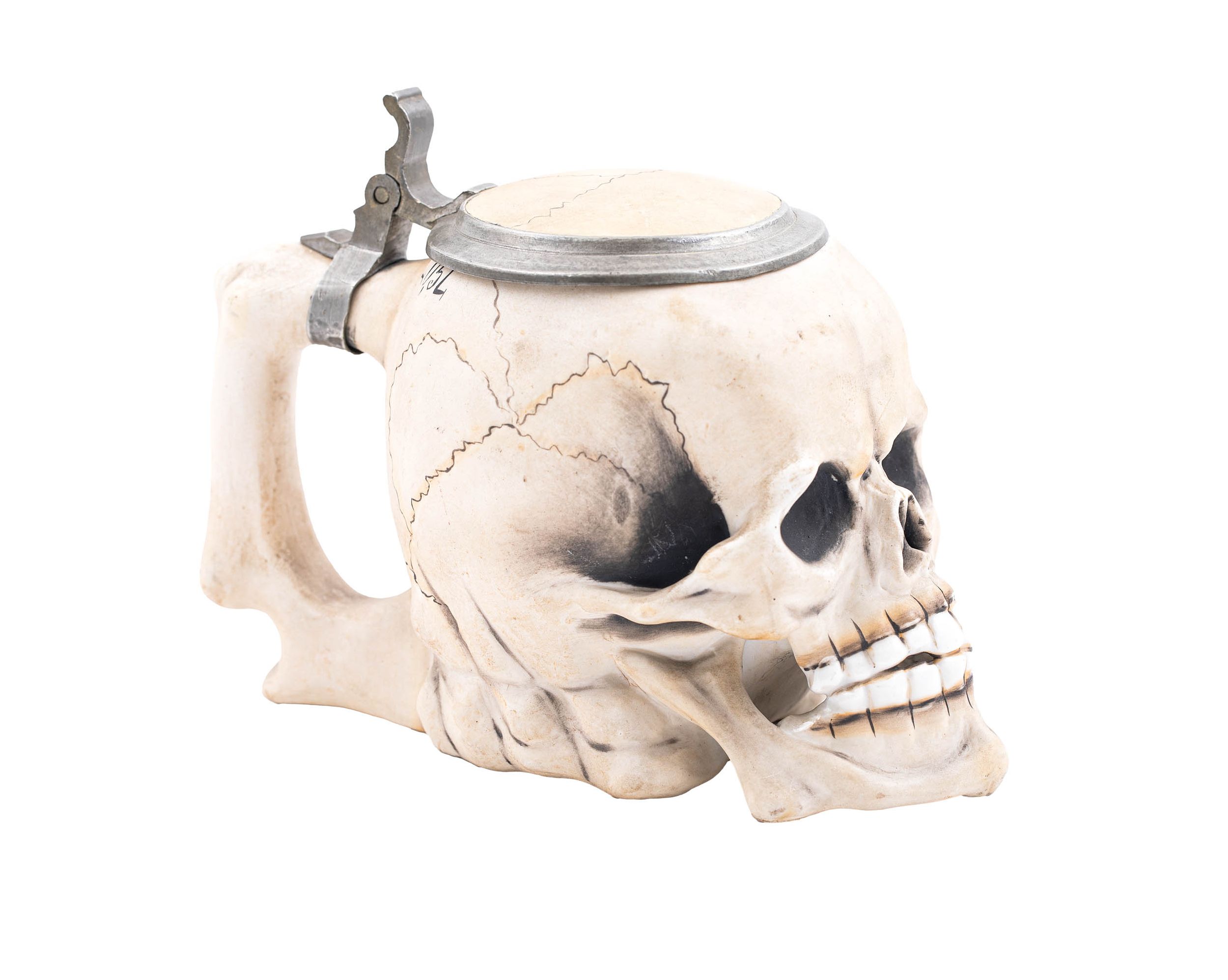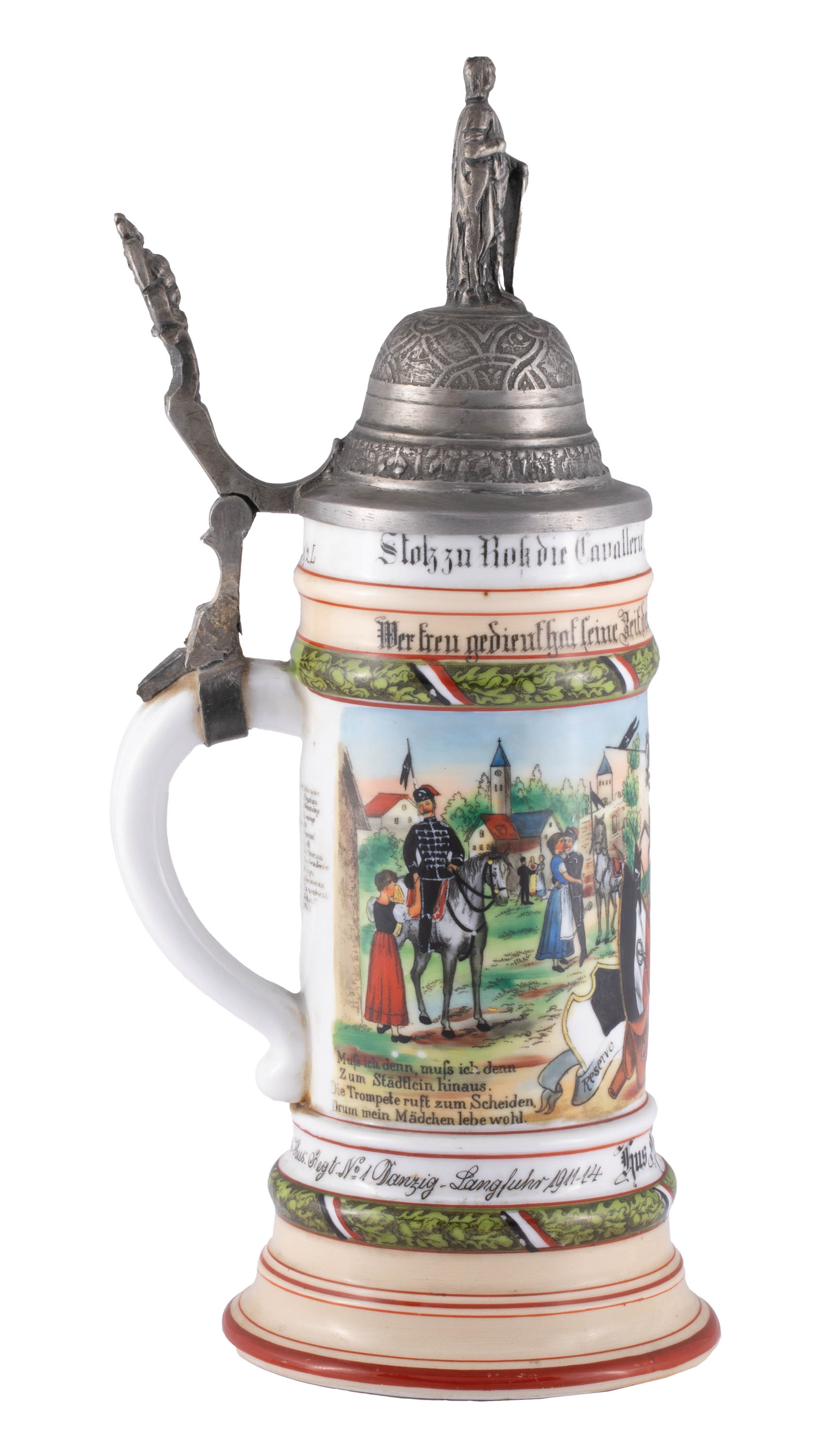 porcelana, malatury naszkliwne, cyna, wys. kufla 20,3 cm, wys. całk. 31,3 cm