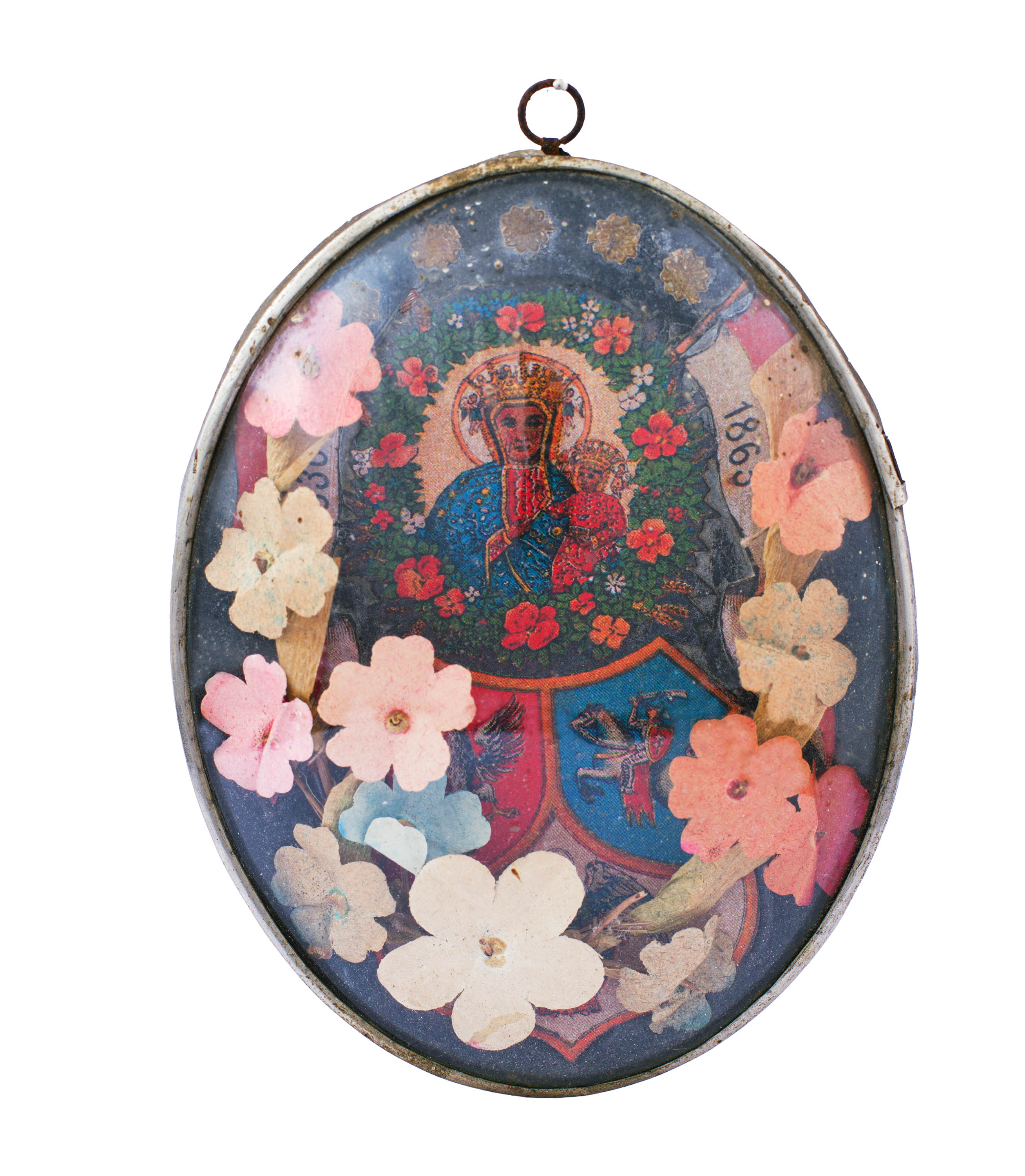 U dołu dwupolowy herb Polski i Litwy, z prawej data „1863”.