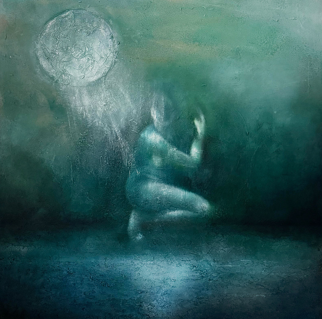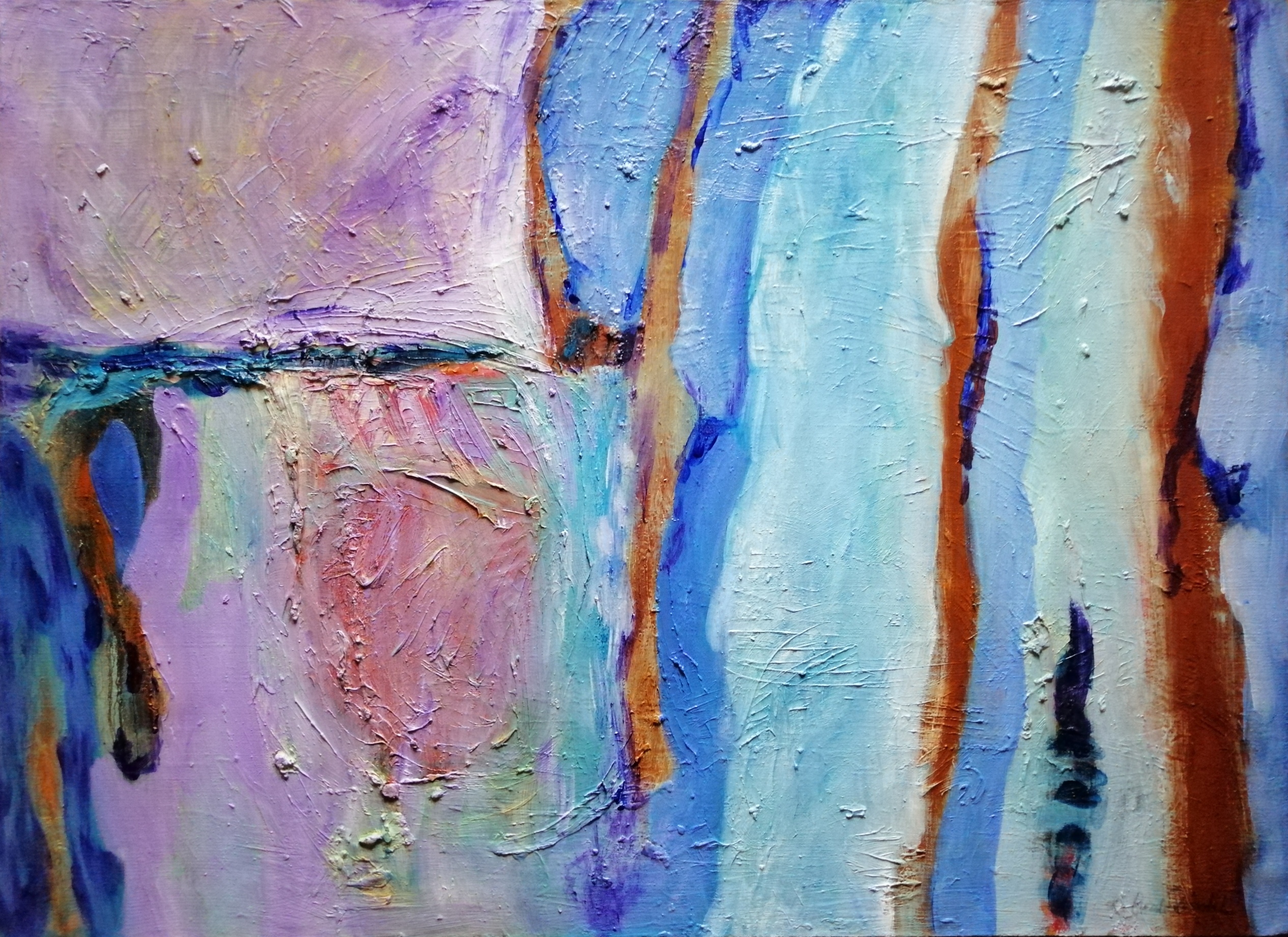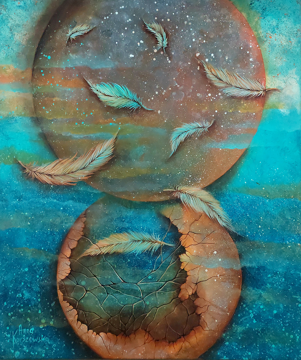 technika mieszana (olej, akryl, struktura, szlagmetal), płótno, 70 x 50 cm,