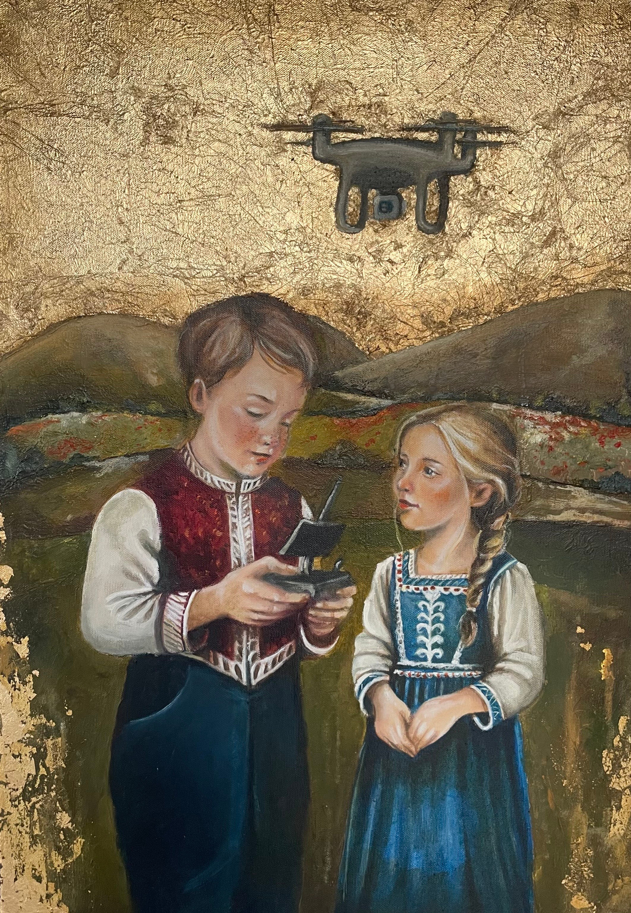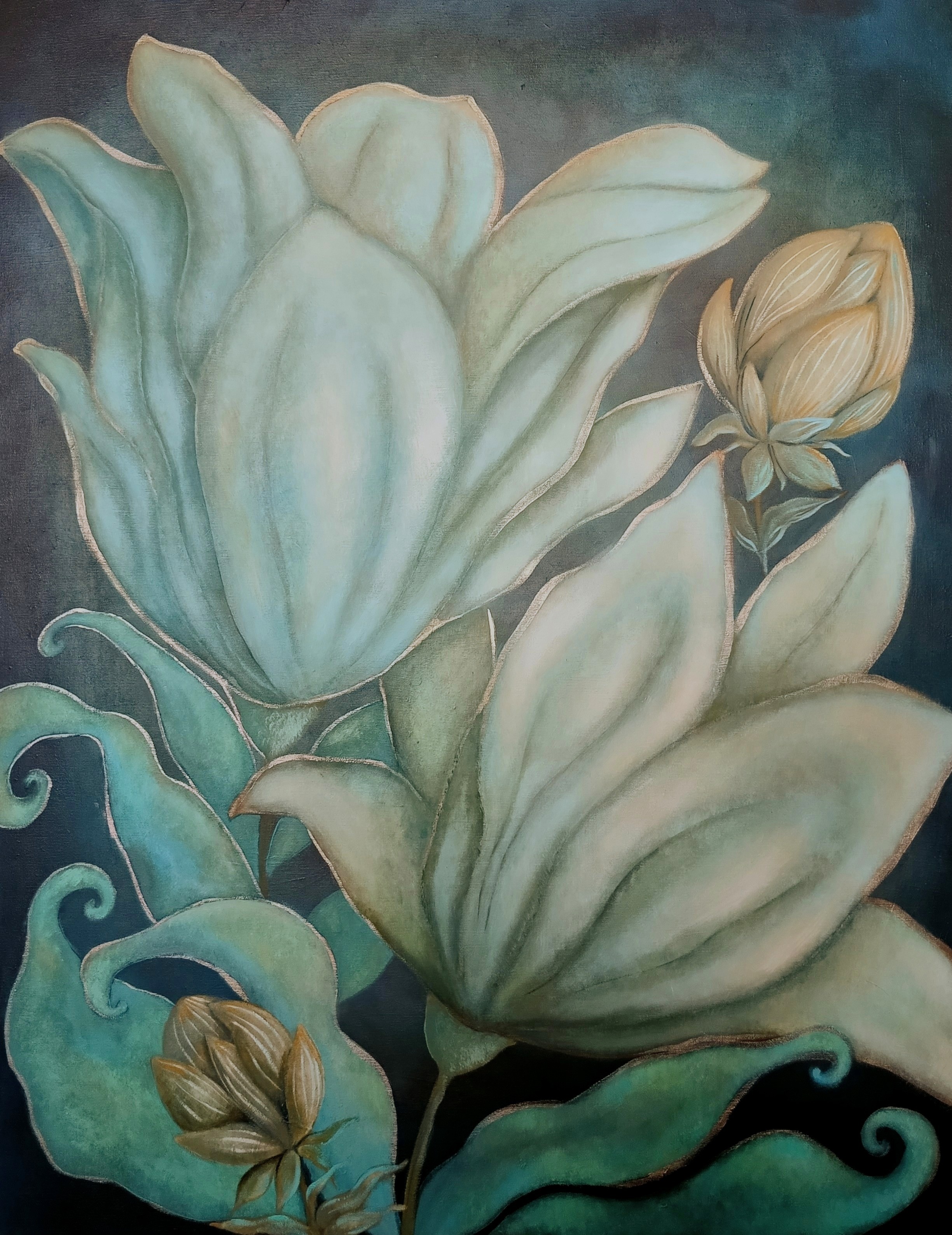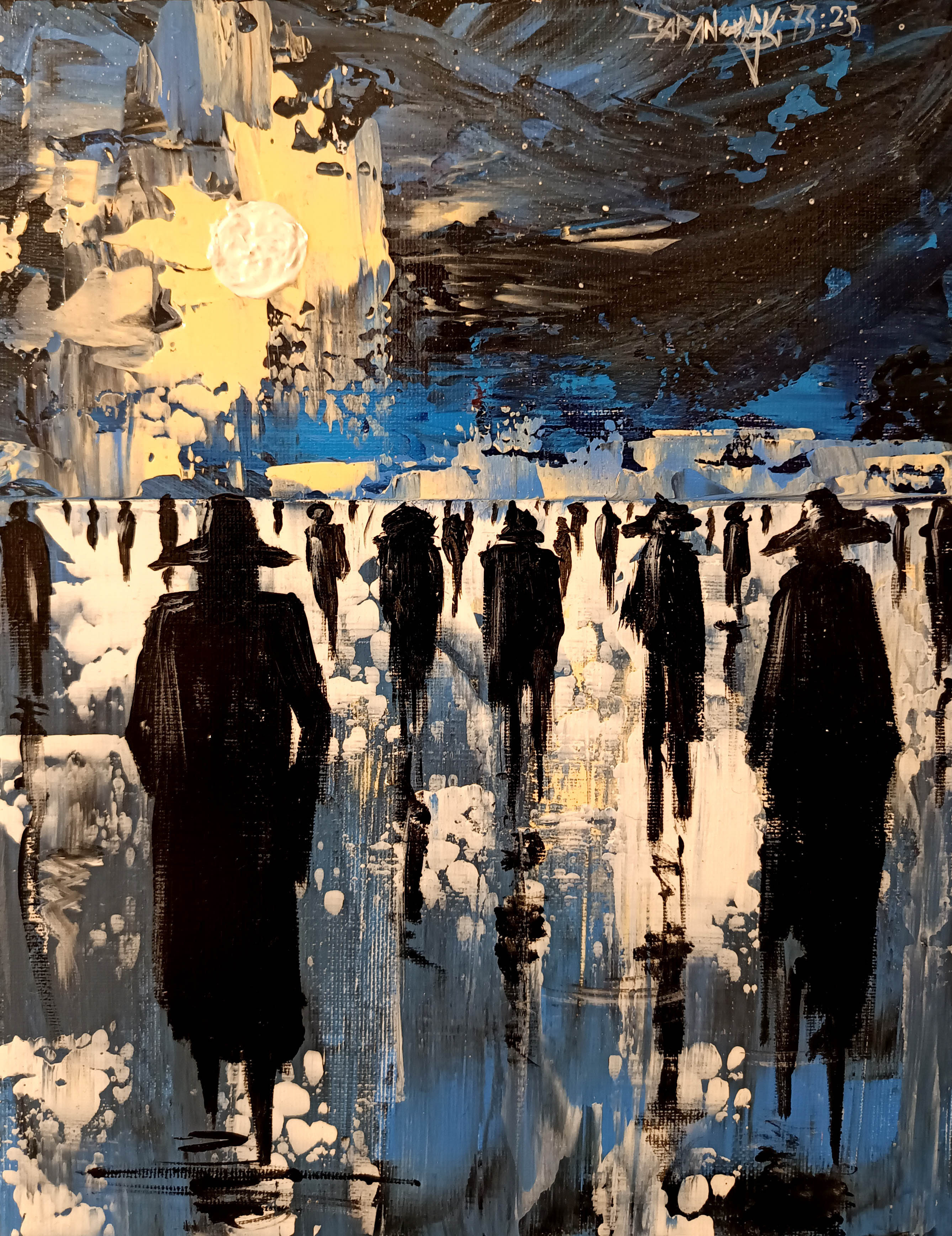 technika mieszana (olej, akryl, struktura, szlagmetal), płótno, 70 x 50 cm,