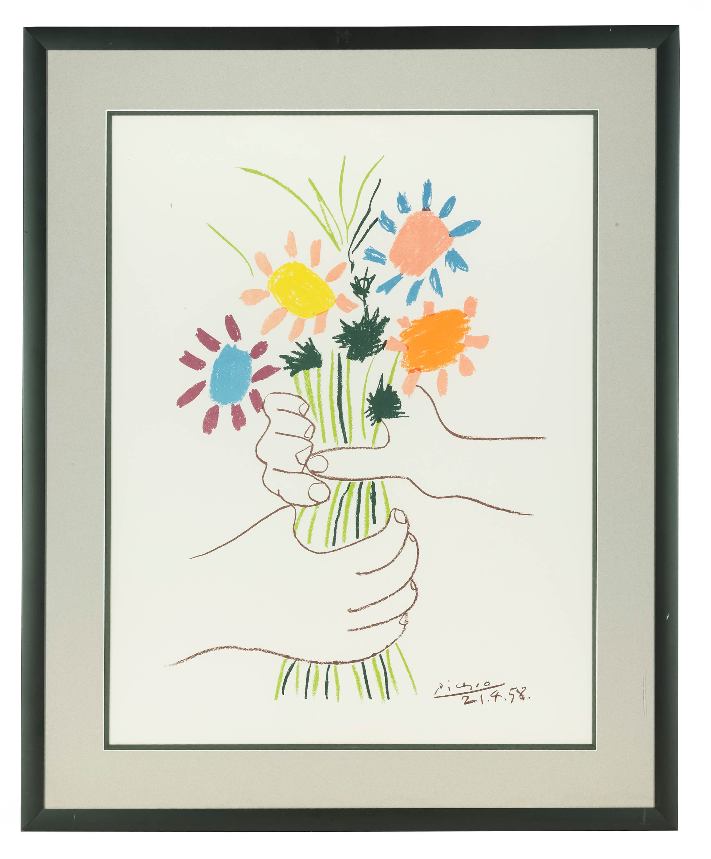 dat. i sygn. z matrycy p.d.: Picasso 21.4.58, sucha pieczęć p.d.: Editions "Combat pour la Paix, S.P.A.D.E.M Paris.