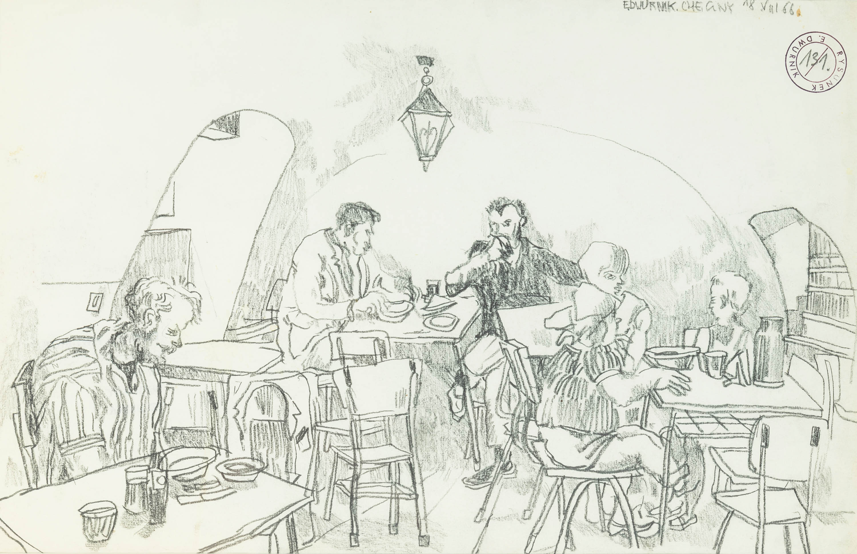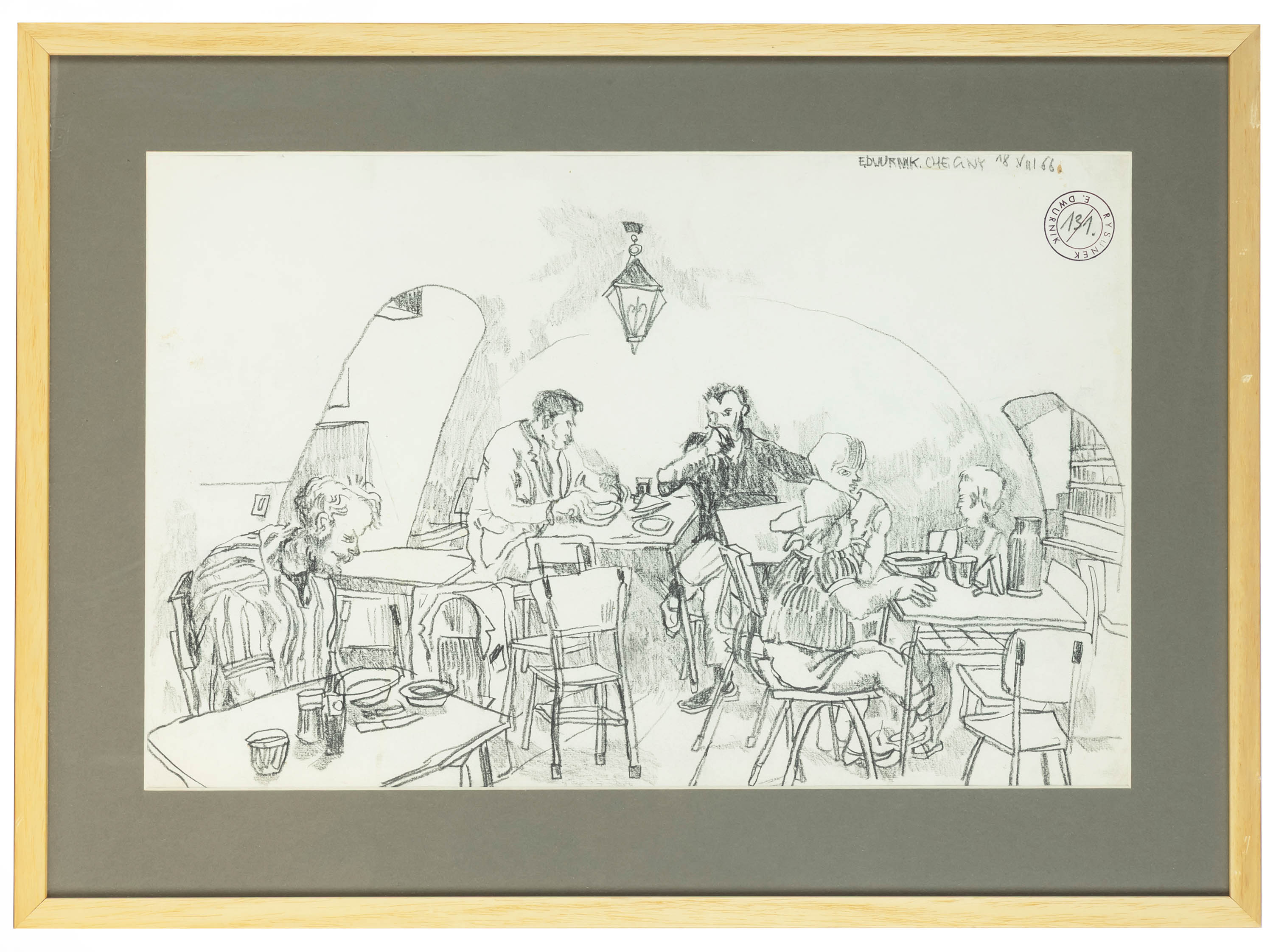 sygn., opisany i dat. p.g.: E.DWURNIK. CHĘCINY18VIII 68, okrągła autorska pieczęć p.g.: RYSUNEK / E.DWURNIK, w środku nr 131