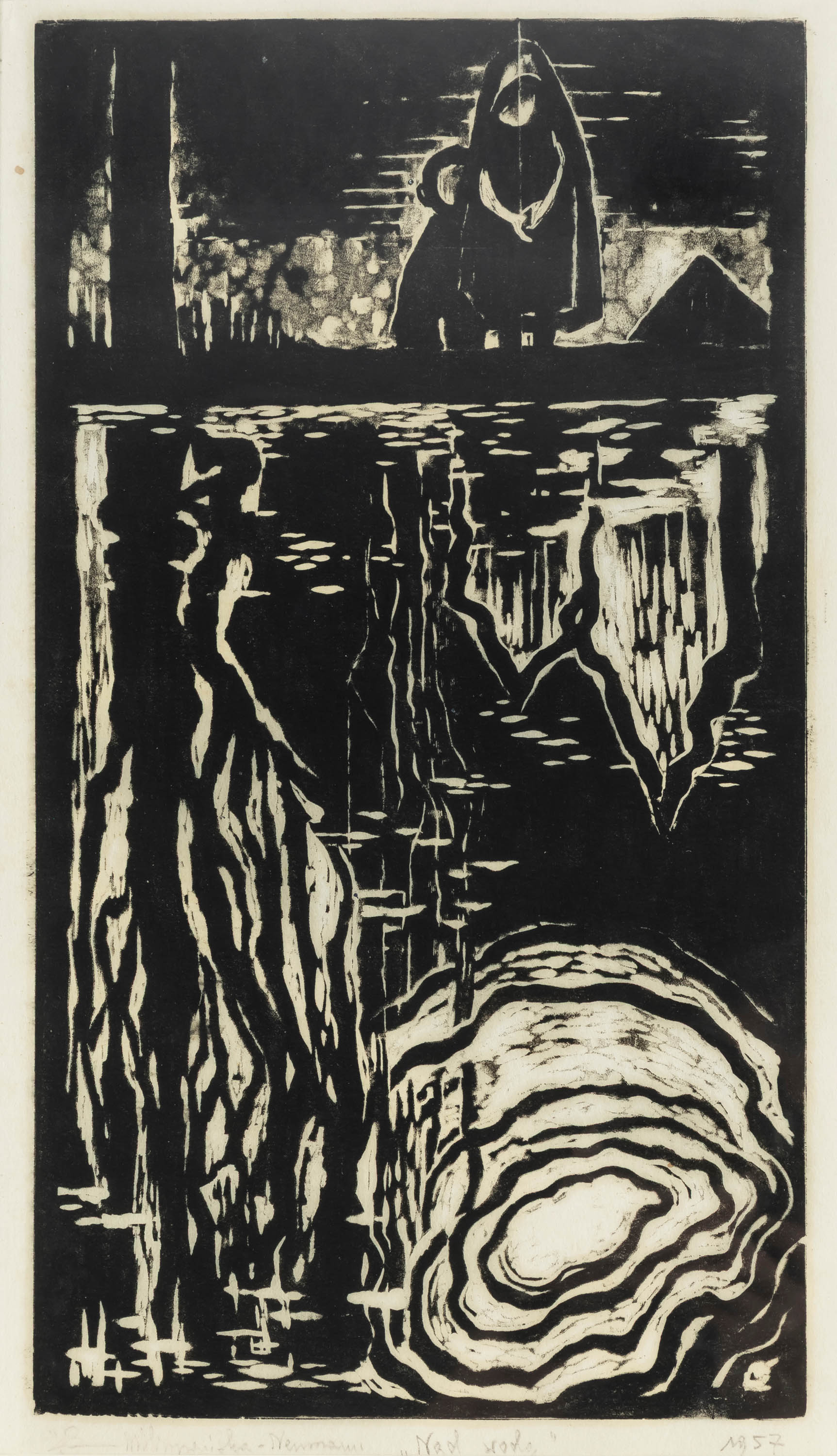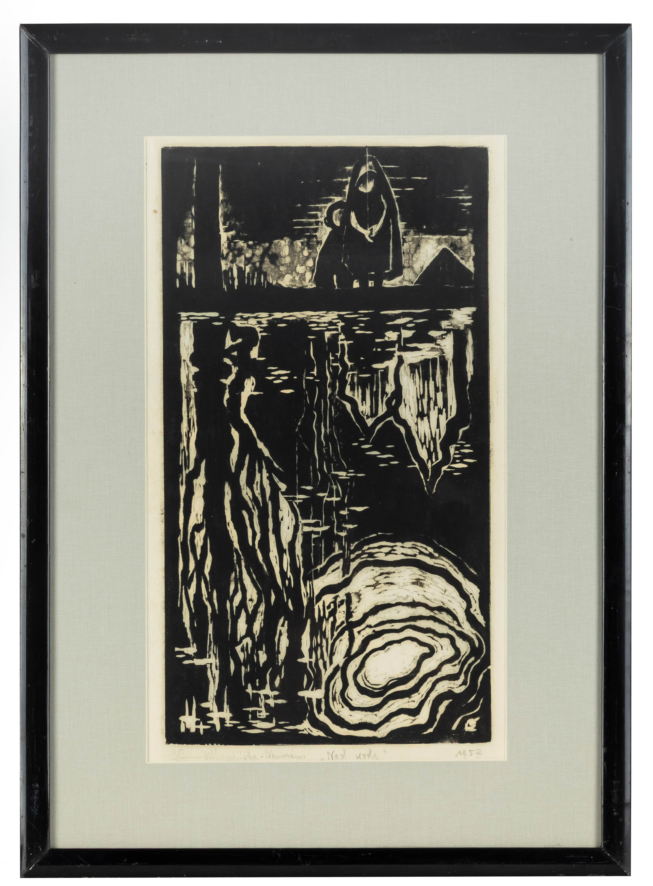 sygn., dat. i opisany ołówkiem u dołu: Maria Hiszpańska-Neumann "Nad wodą" 1957