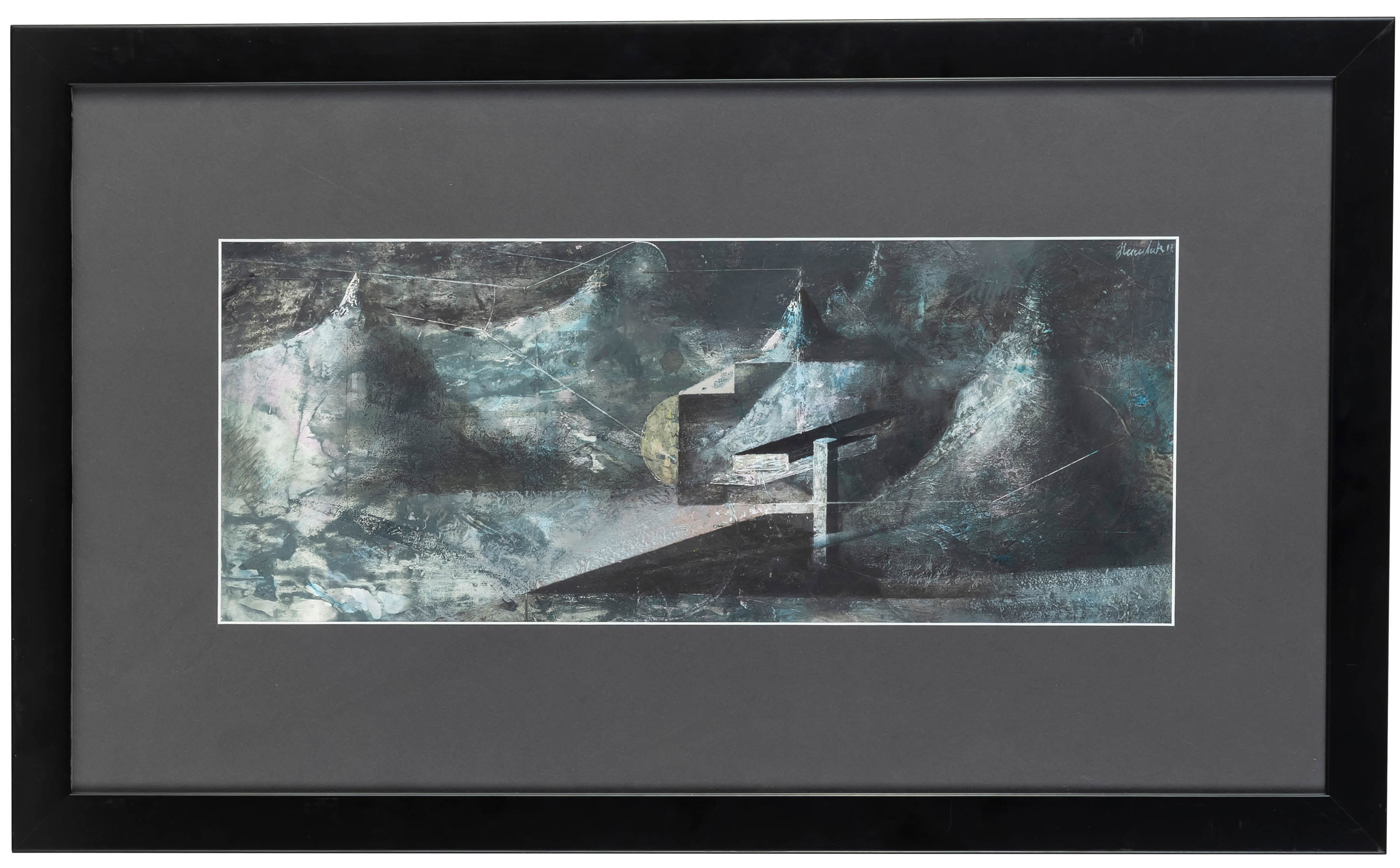 tempera, papier, 20 x 48 cm w świetle passe-partout,