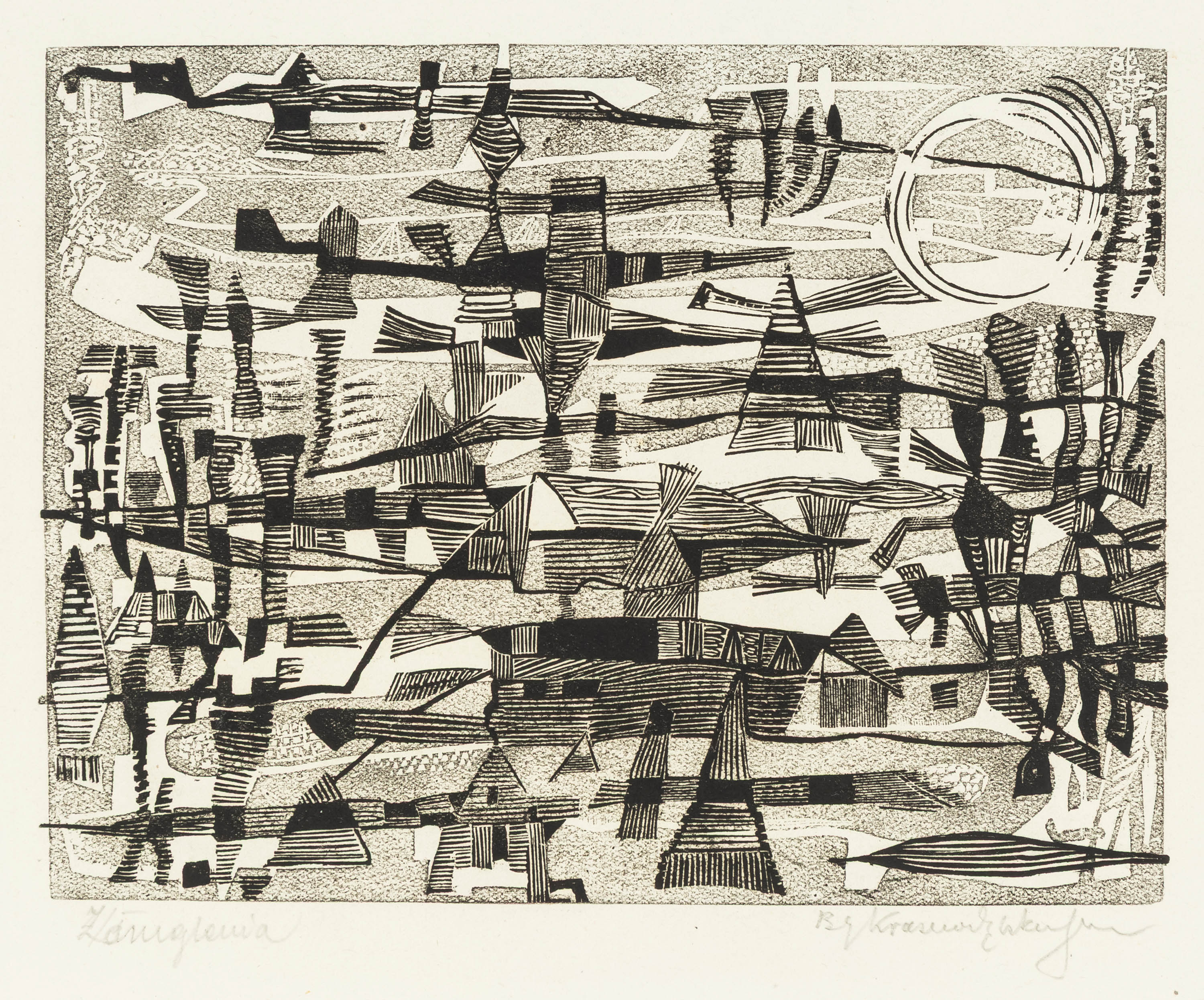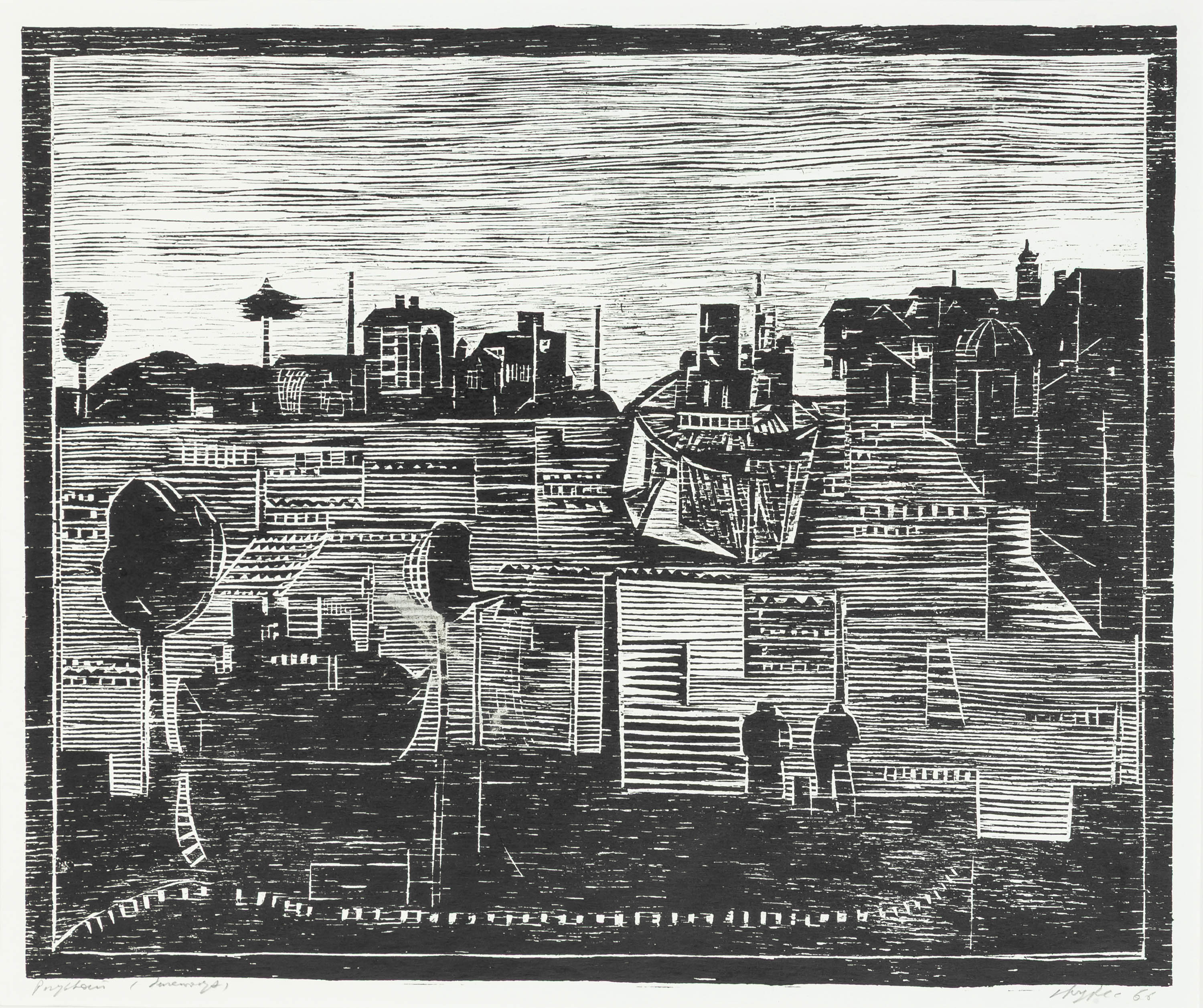 sygn. i dat. p.d.: Stryjec 68, opisany l.d.: Przystań (drzeworyt)