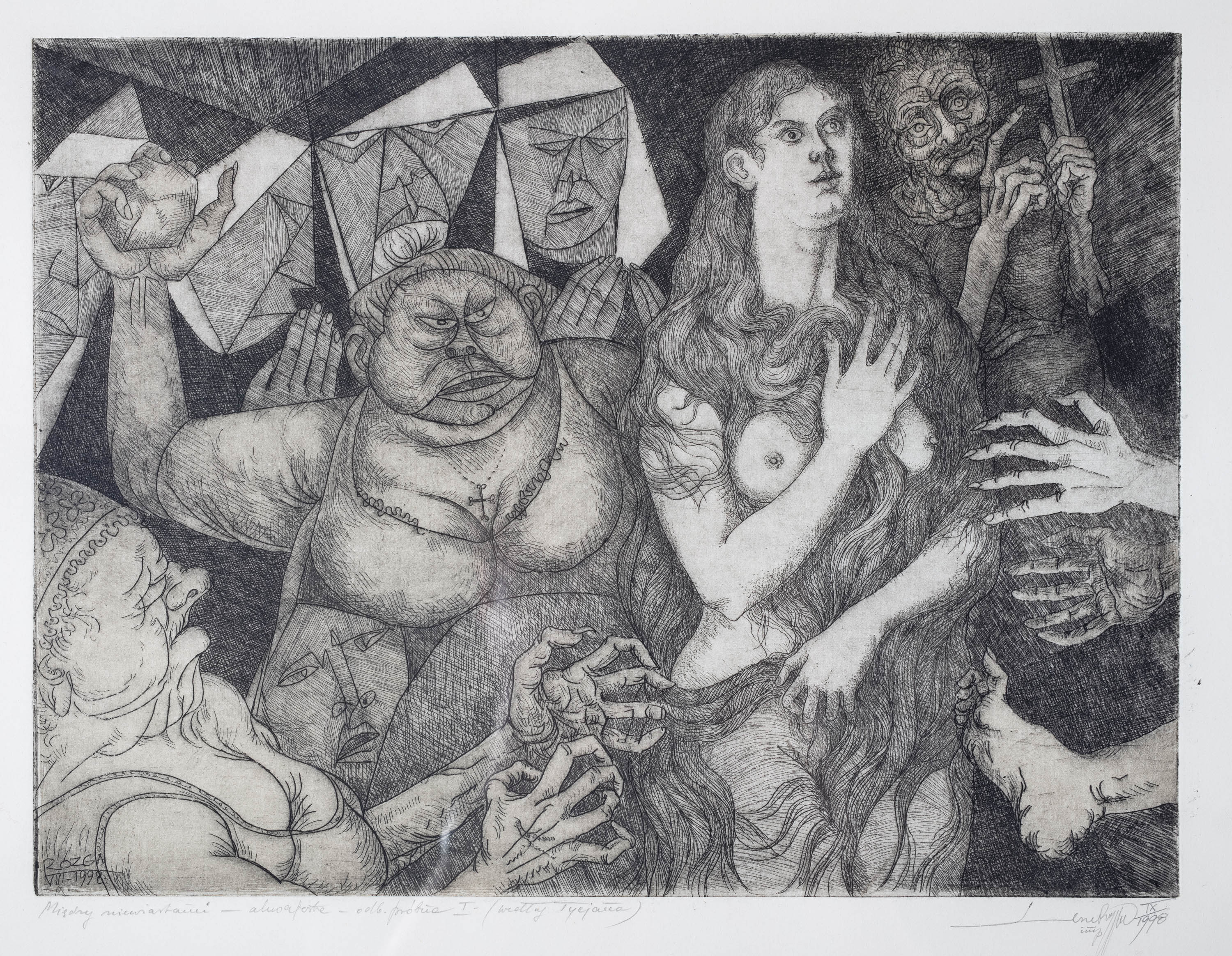akwaforta, akwatinta, sucha igła, papier, 52 x 66 cm w świetle passe-partout,
