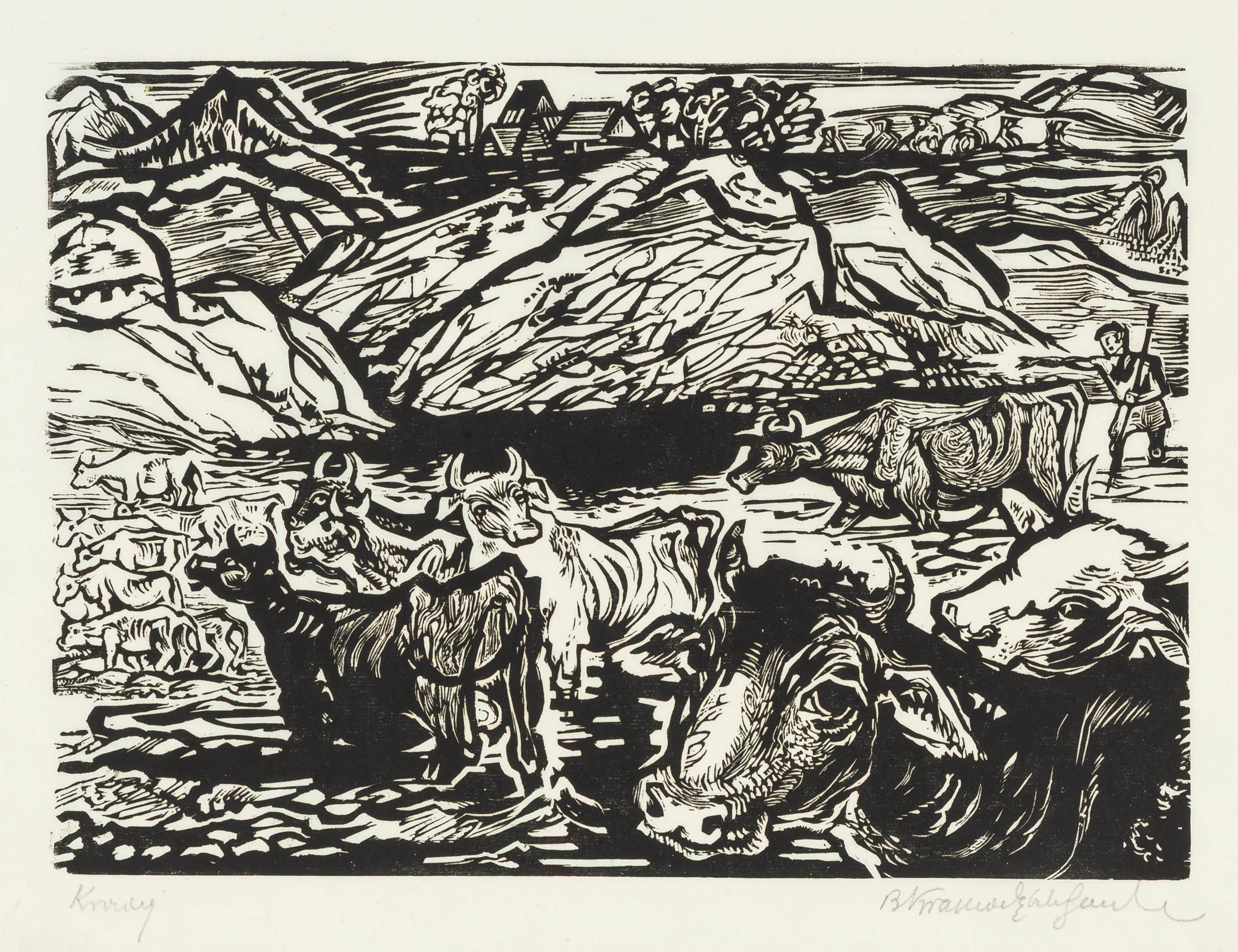 sygn. ołówkiem p.d.: BKrasnodębskaGardowska, opisany ołówkiem l.d.: Krowy
