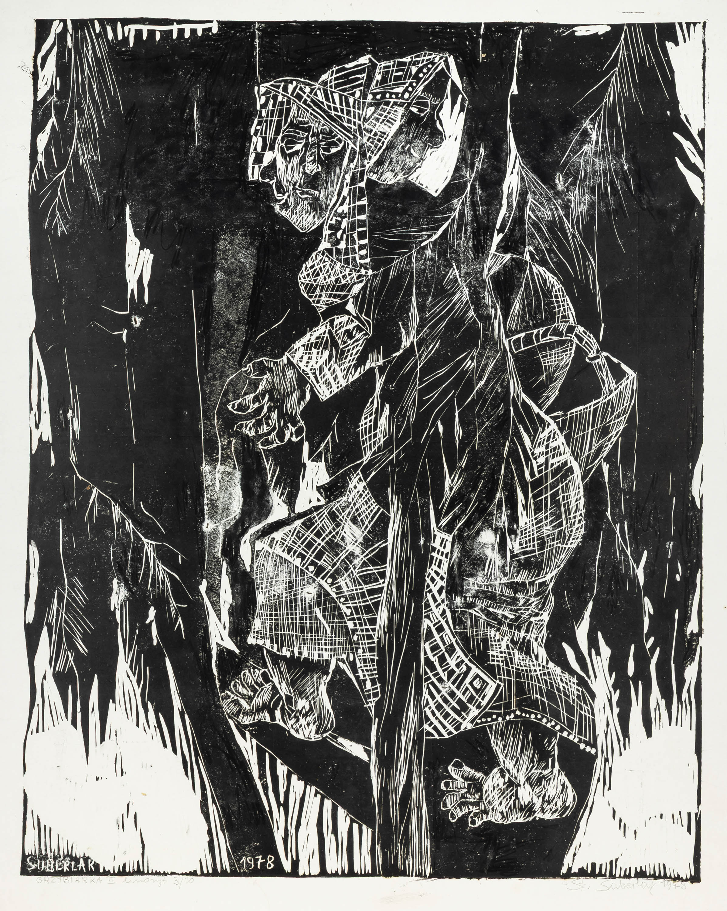 sygn. i dat. ołówkiem p.d.: St. Suberlak 1978, opisany ołówkiem l.d.: GRZYBIARKA II linoryt 3/10