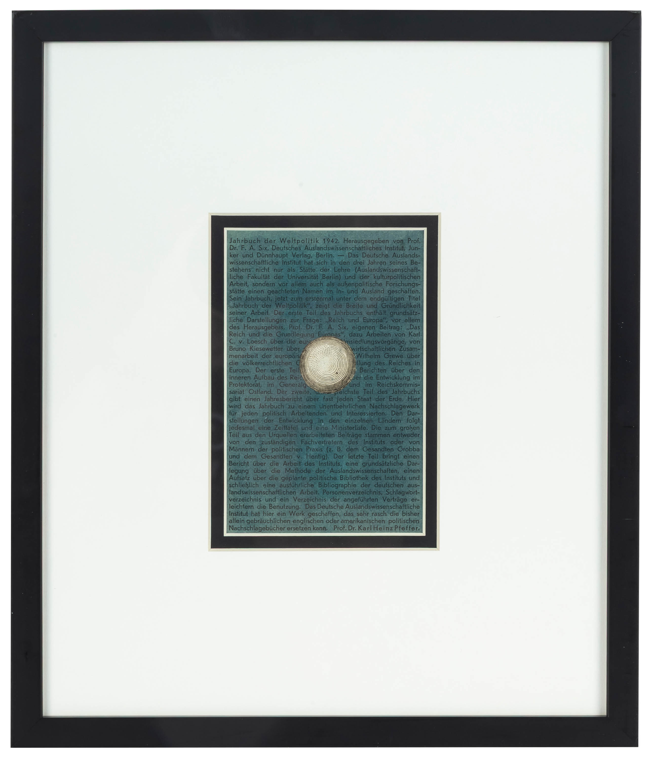 technika własna, kolaż, papier gazetowy, 15 x 10 cm w świetle passe-partout,