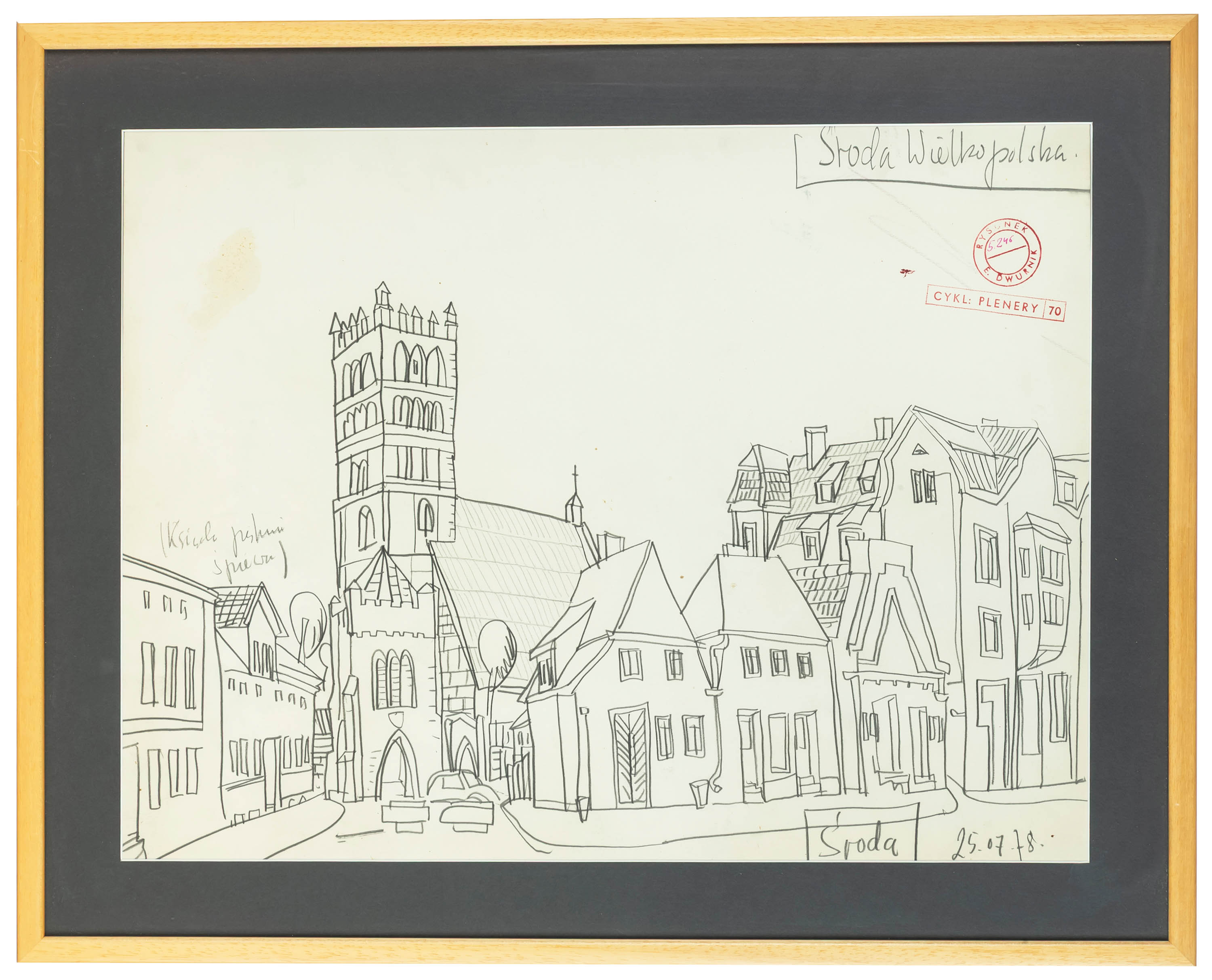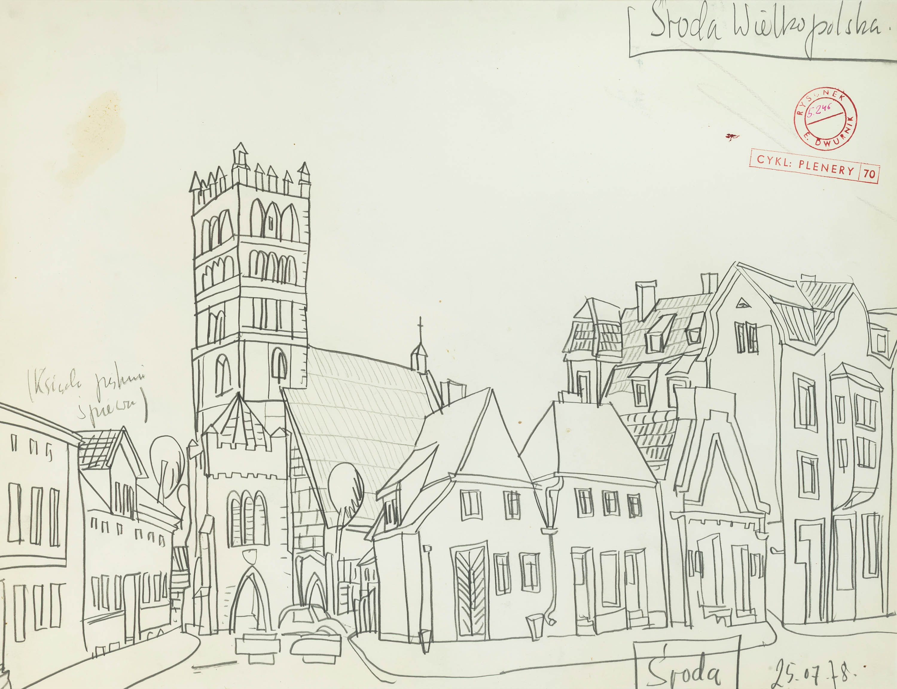 opisany p.g.: Środa Wielkopolska, okrągła autorska pieczęć p.g.: RYSUNEK / E.DWURNIK w środku nr 5246 oraz prostokątna CYKL: PLENERY 70, opisany i dat. p.d.: Środa...