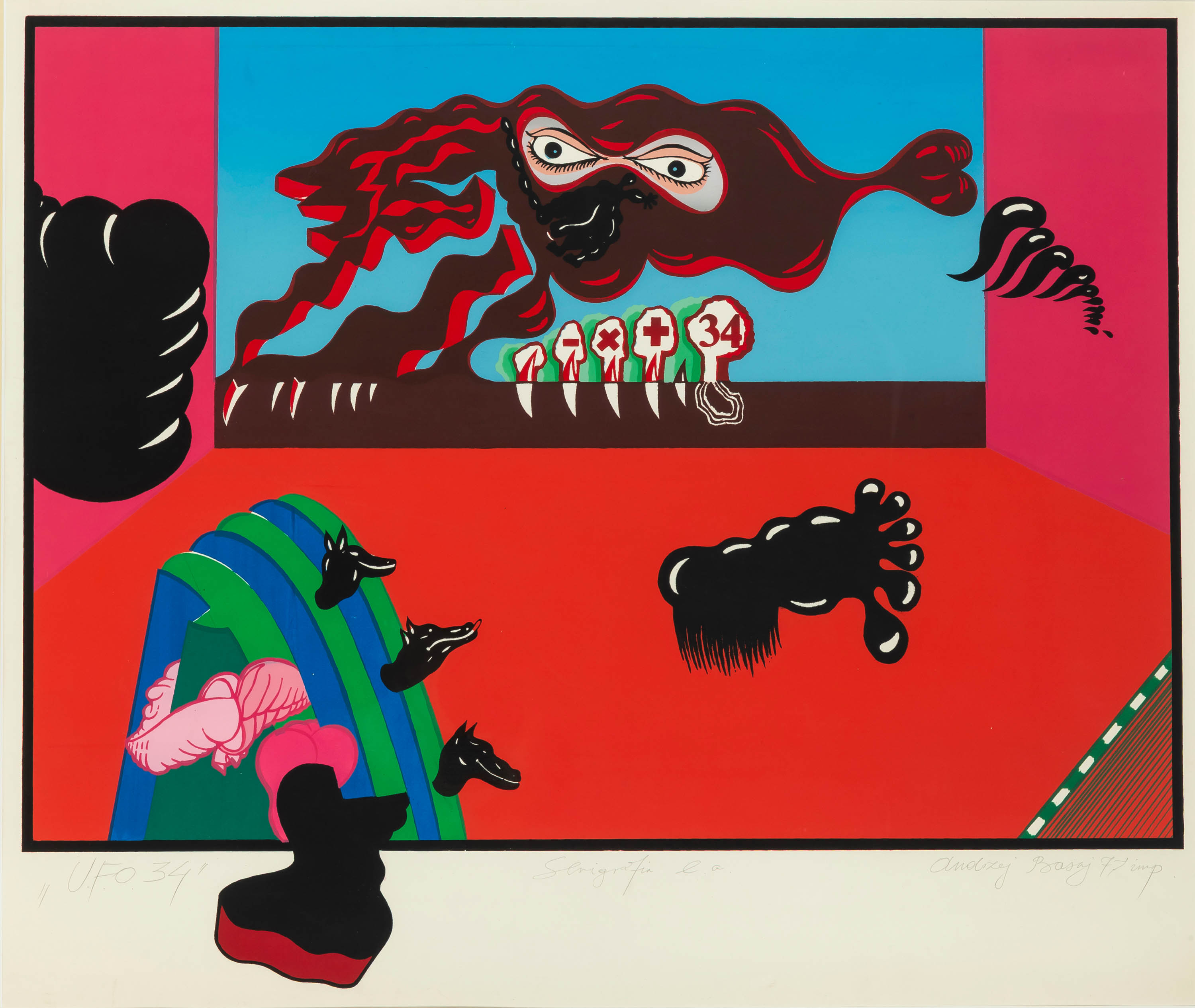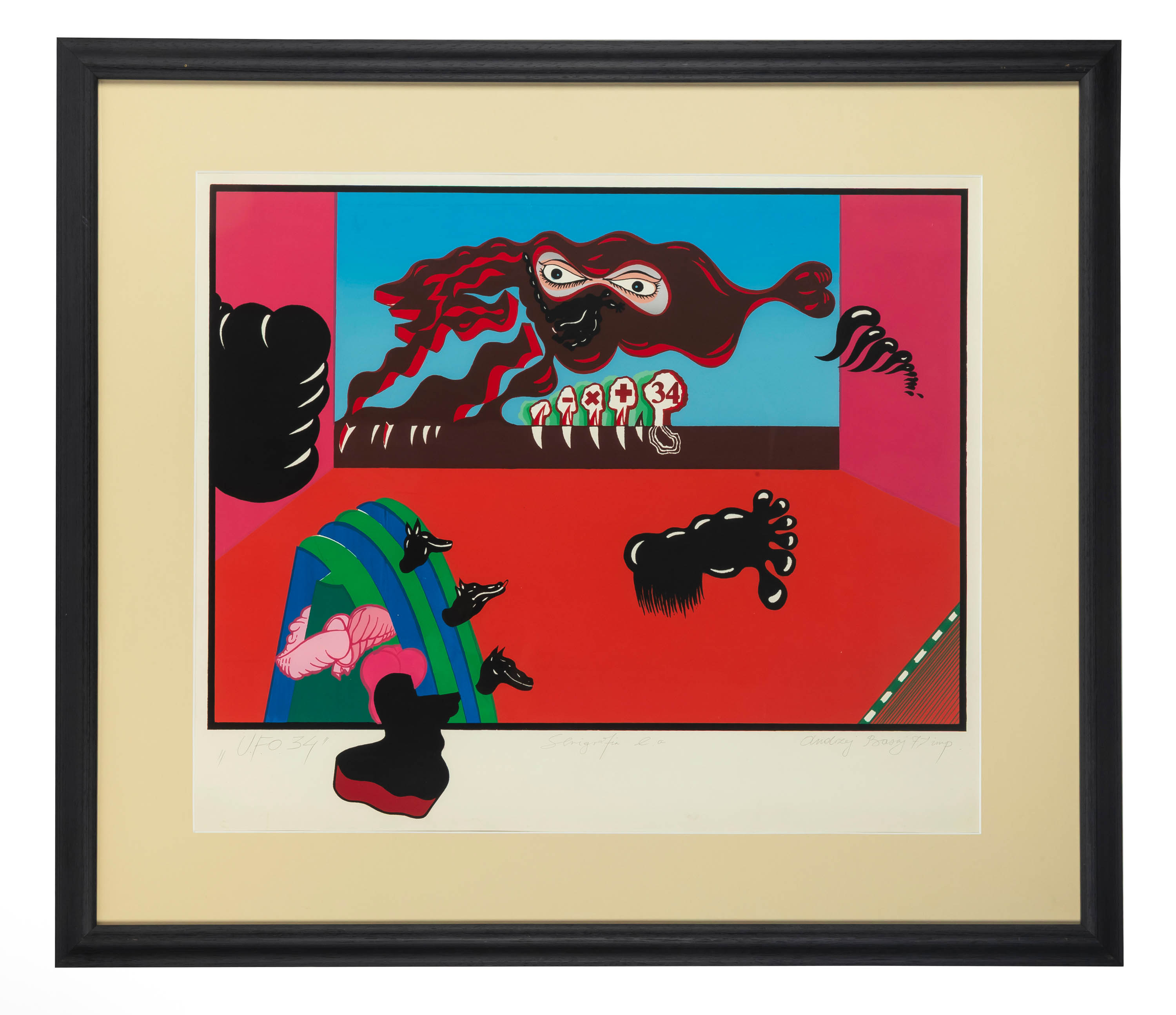 sygn. i dat. p.d.: Andrzej Basaj 77, opisana l.d.: "U.F.O. 34", opisana śr.d.: Serigrafia ea