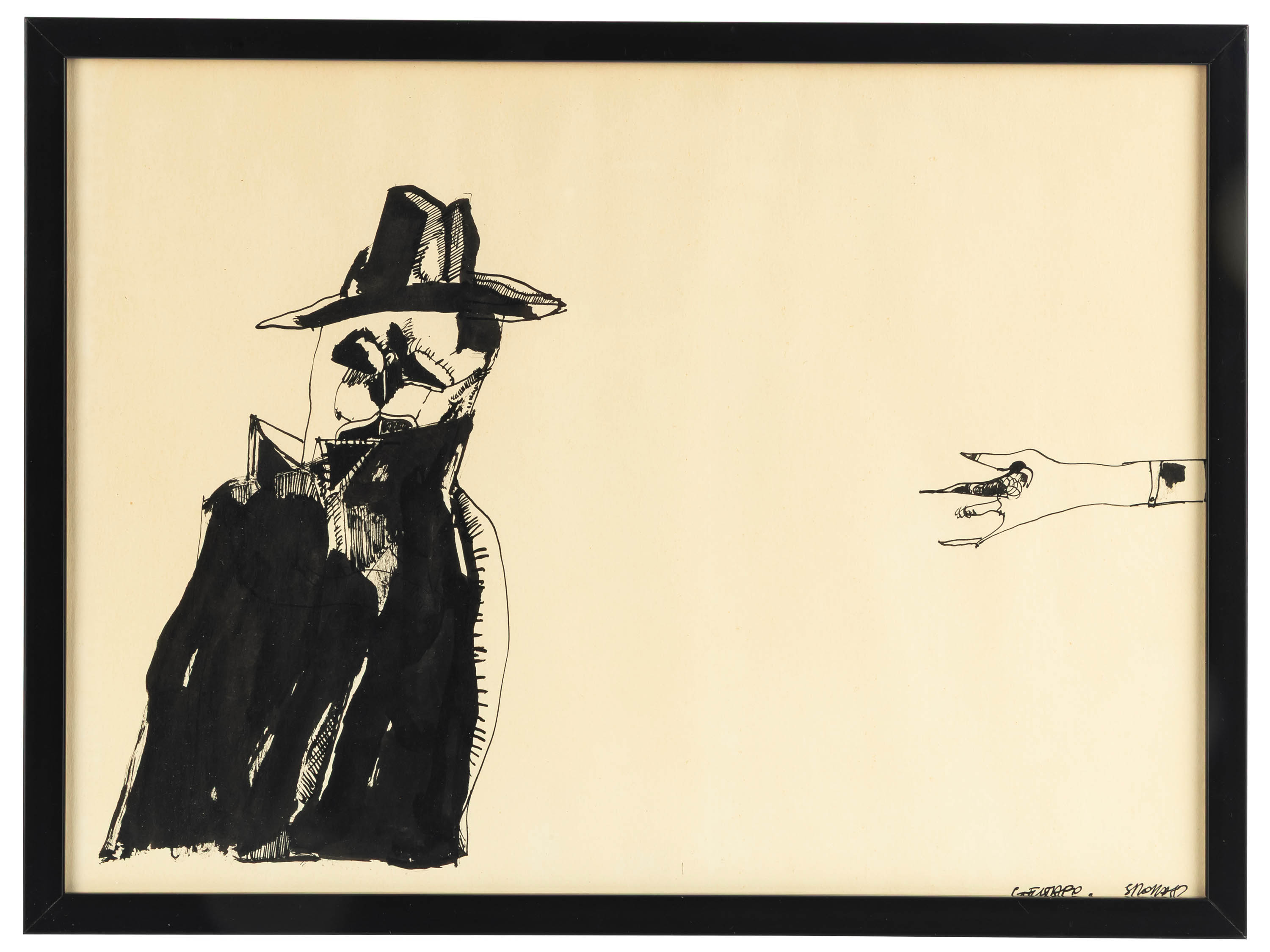 sygn., opisany i dat. na odwrocie: Włodzimierz Pawlak/Rysunek tuszem/96 2009