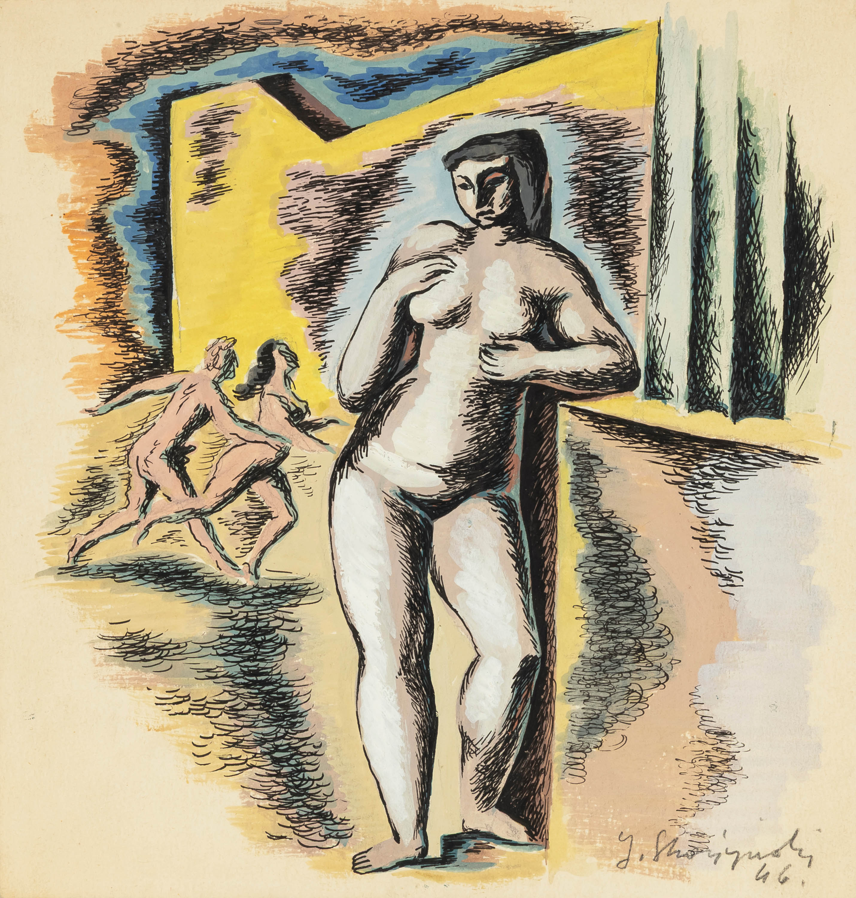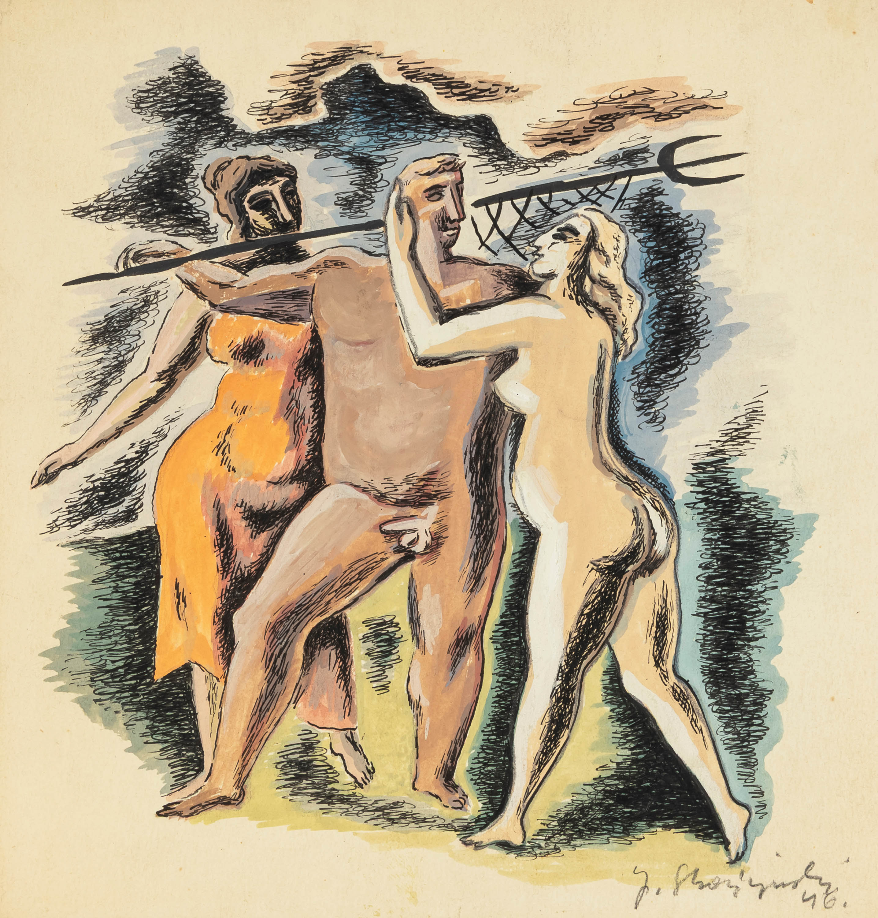 sygn. i dat. ołówkiem p.d.: M. Malina 1966 r., opisany ołówkiem l.d.: 1/XX Kompozycja z postaciami III.