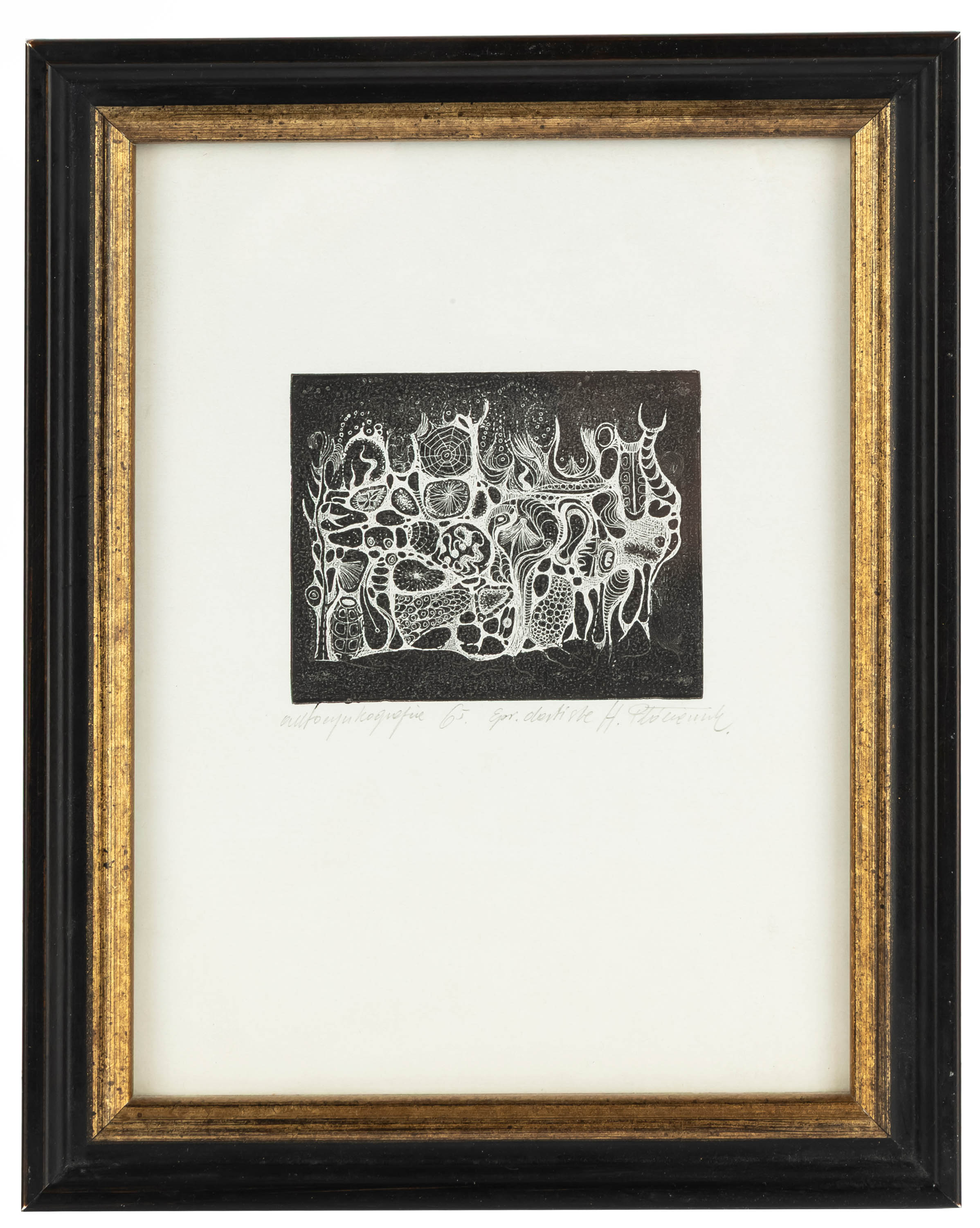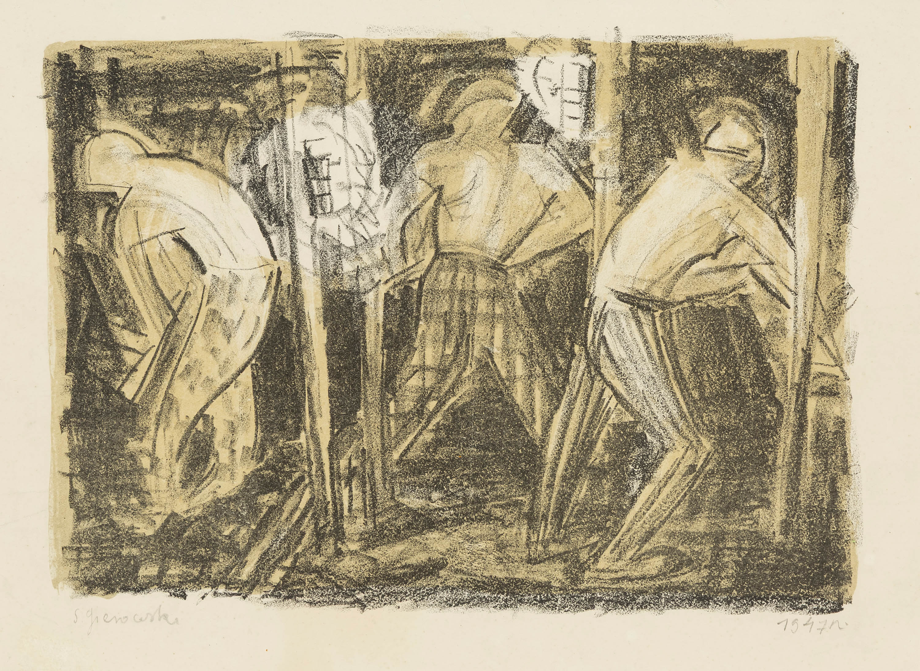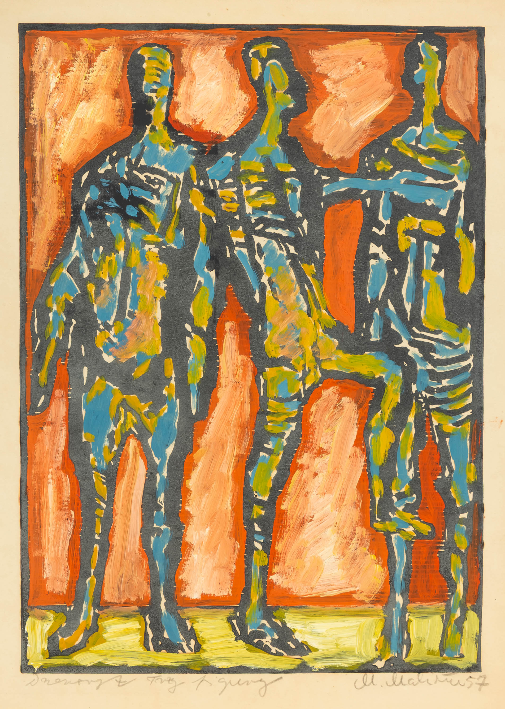 sygn. i dat. ołówkiem u dołu: drzeworyt Trzy figury M. Malina 57