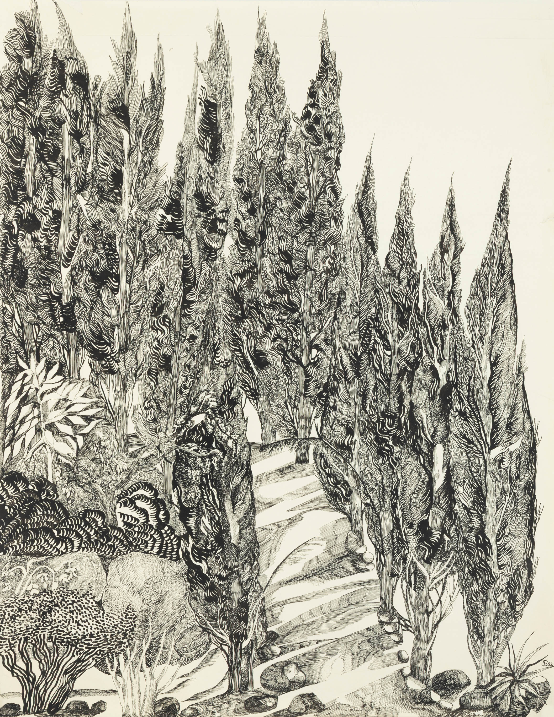 tusz, papier, 31 x 21 cm w świetle passe-partout,