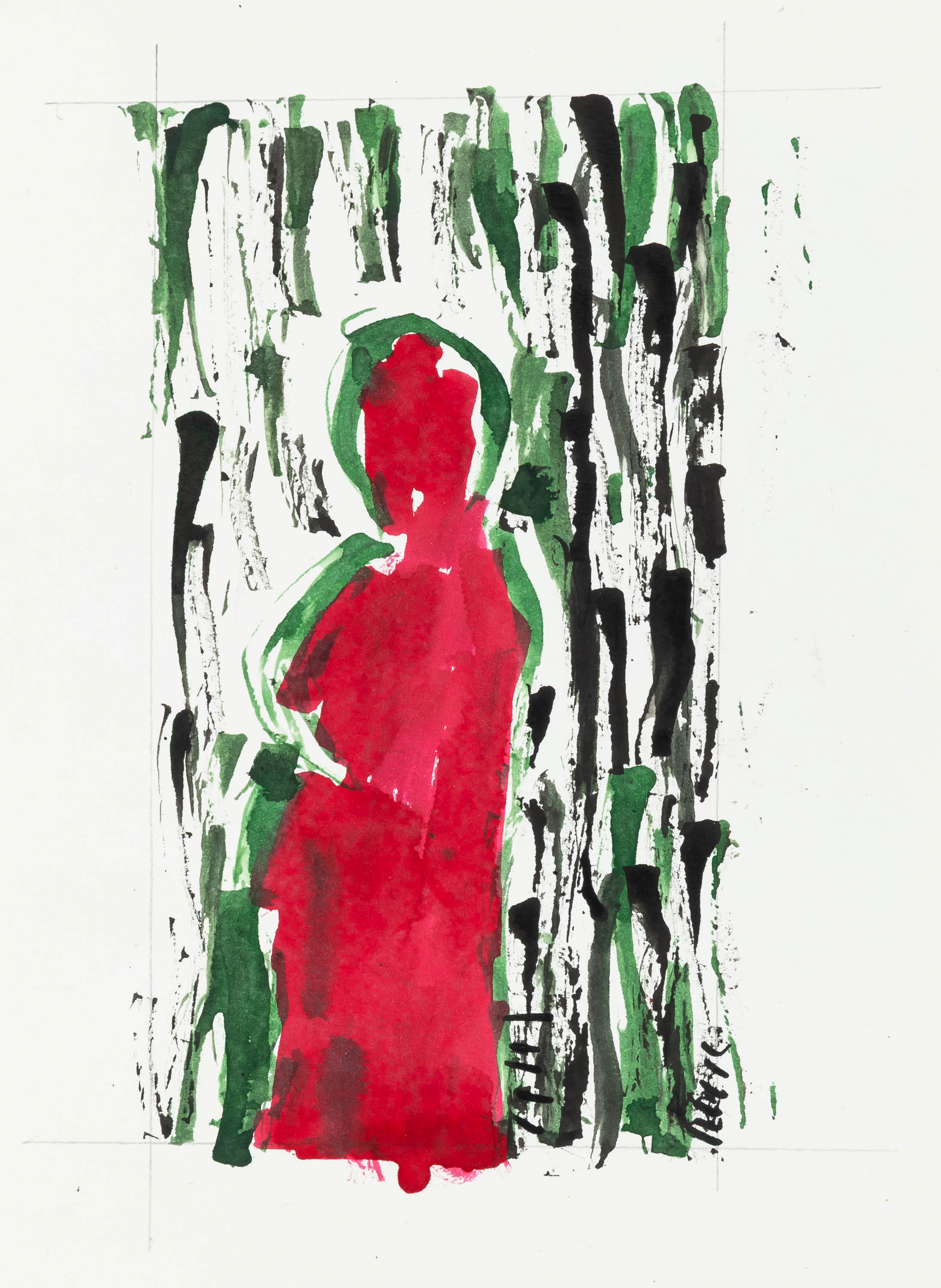 ołówek, tusz, akwarela, papier, 30 x 21 cm,