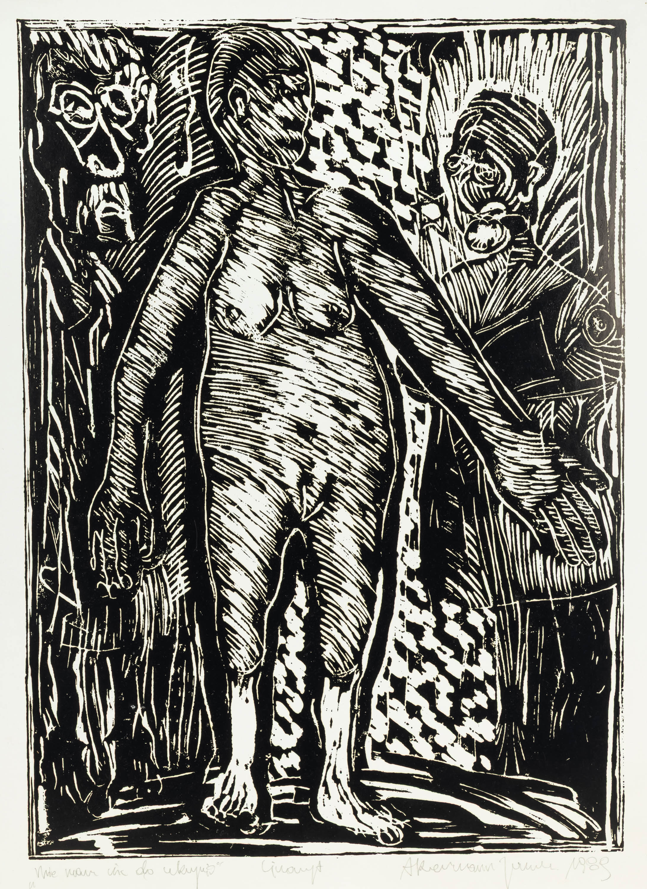 sygn. i dat. ołówkiem p.d.: AkermannJanusz 1989, opisany ołówkiem l.d.: Nie mam nic do ukrycia / linoryt