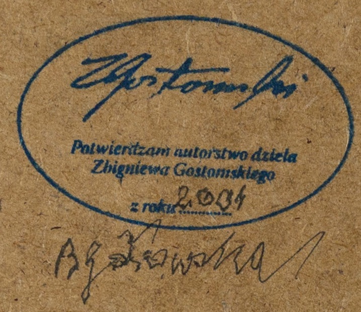 na odwrociu pieczątka: Potwierdzam autorstwo dzieła Zbigniewa Gostomskiego z roku 2004r. sygn. Bgostomska