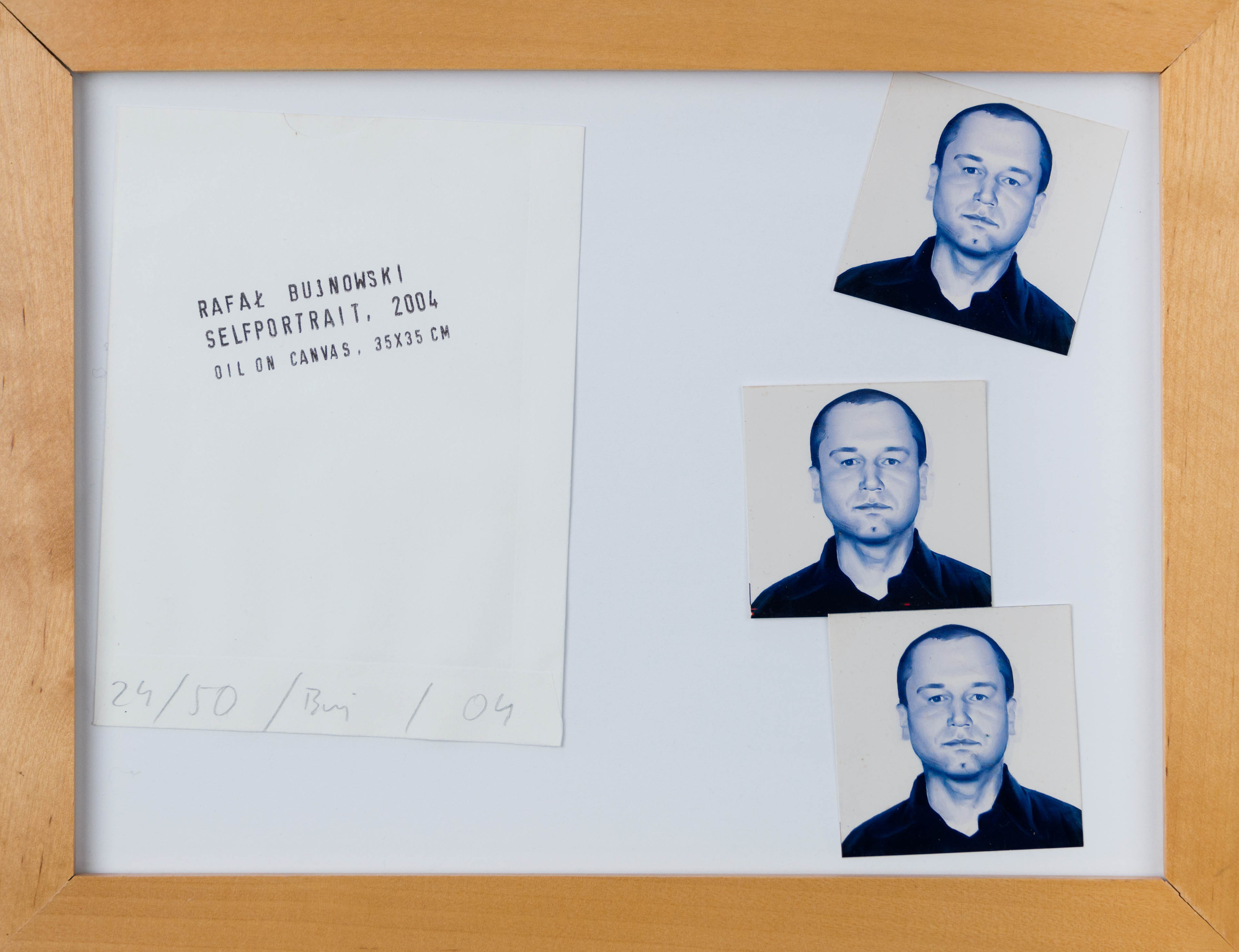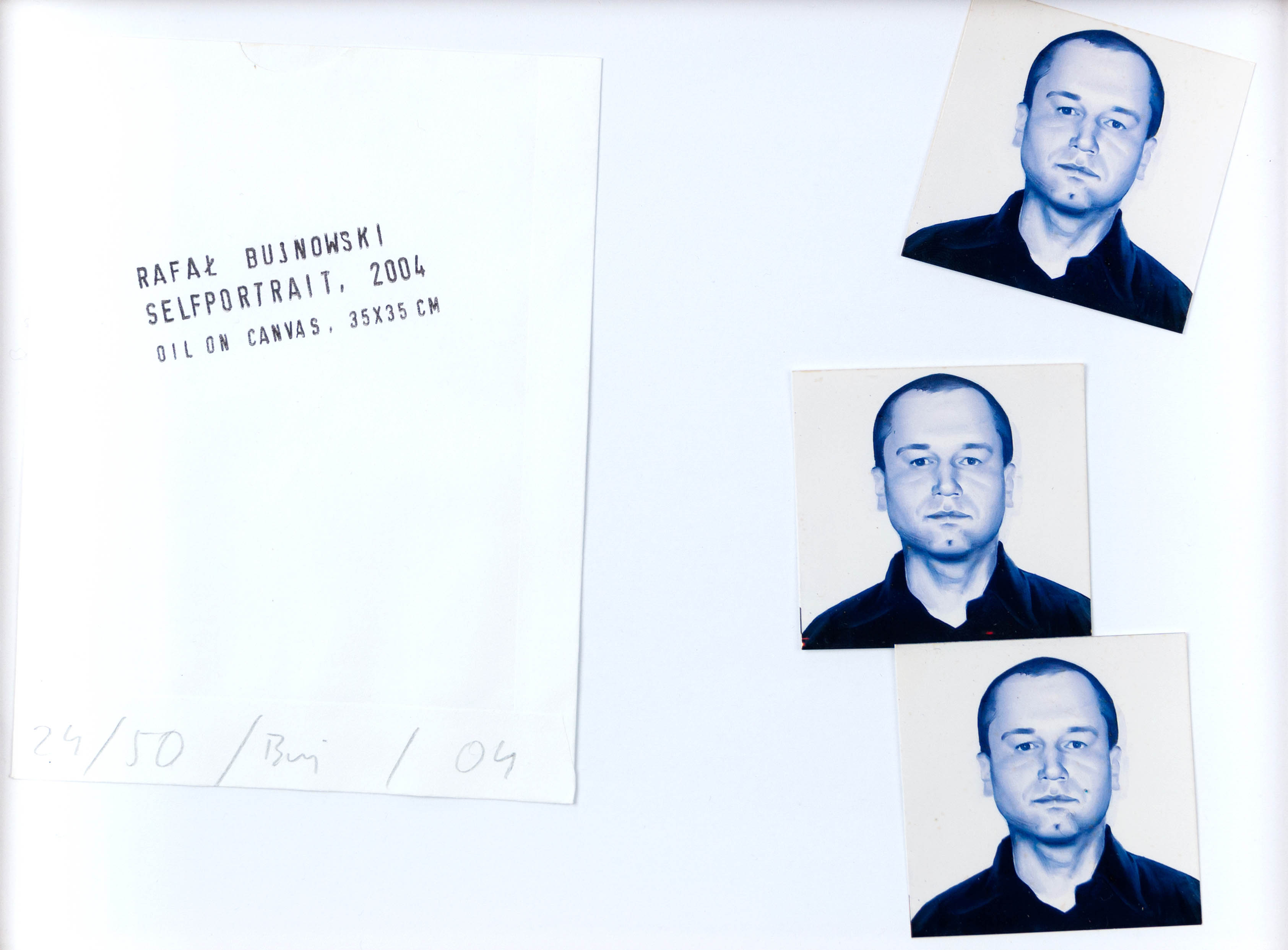 opisany w kompozycji: RAFAŁ BUJNOWSKI / SELFPOITRET, 2004 / OIL ON CANVAS, 35X35 CM, poniżej informacja o nakładzie wraz z sygnaturą i datą:...