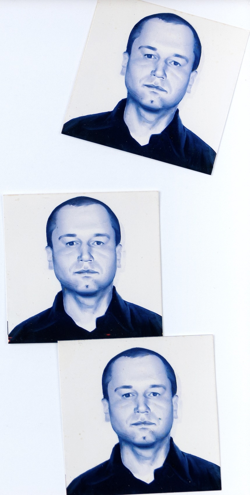 3 fotografie paszportowe, 5 x 5 cm, stemplowana i sygnowana koperta