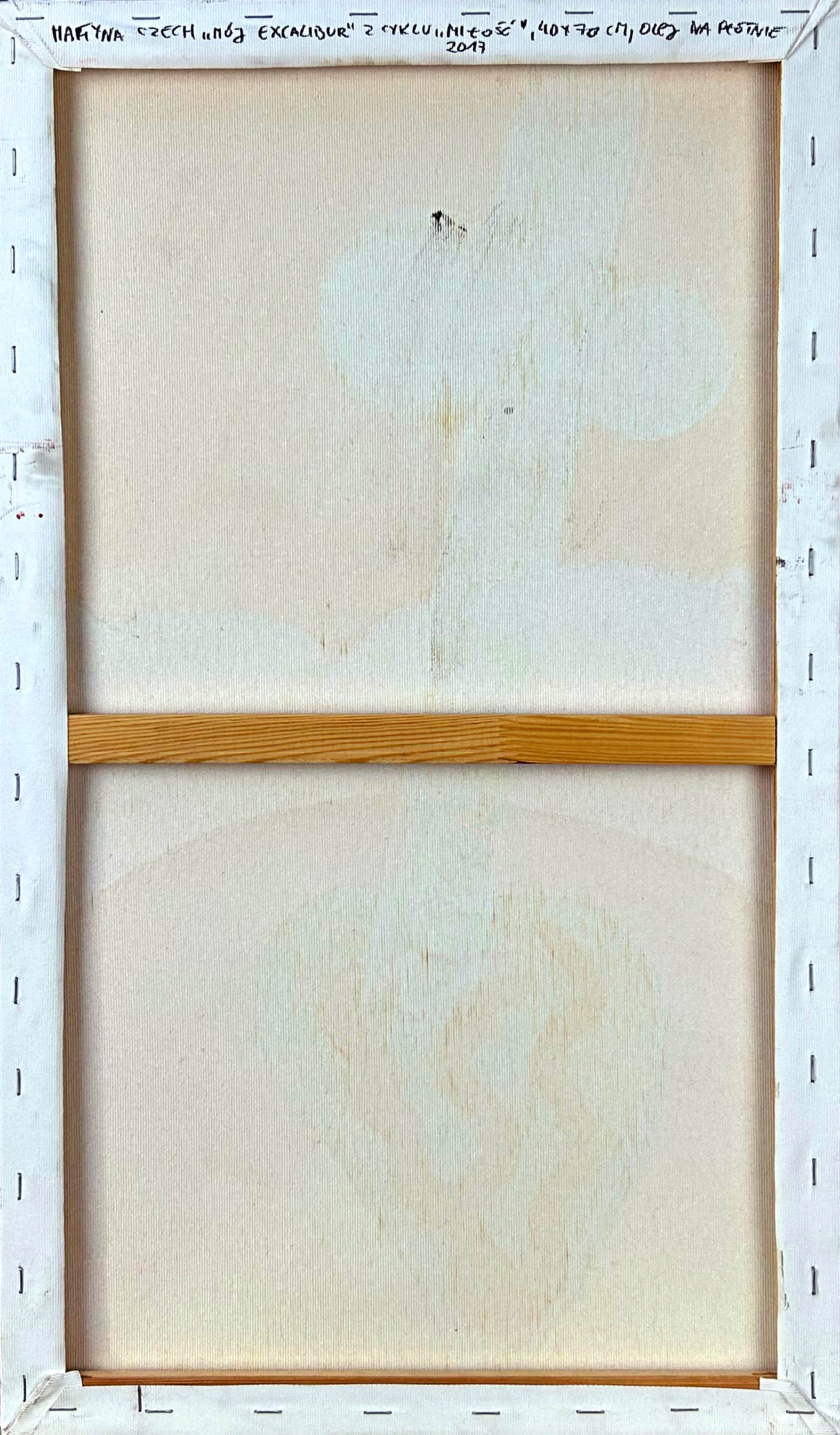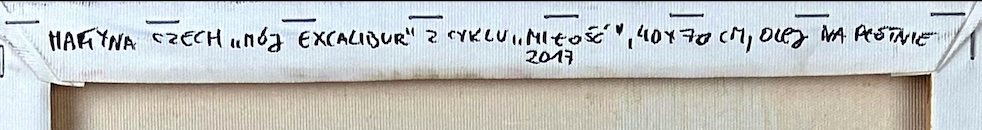 na odwrocie opis autorski: MARTYNA CZECH "MÓJ EXCALIBUR" Z CYKLU "MIŁOŚĆ", 40 x 70 CM, OLEJ NA PŁÓTNIE / 2017