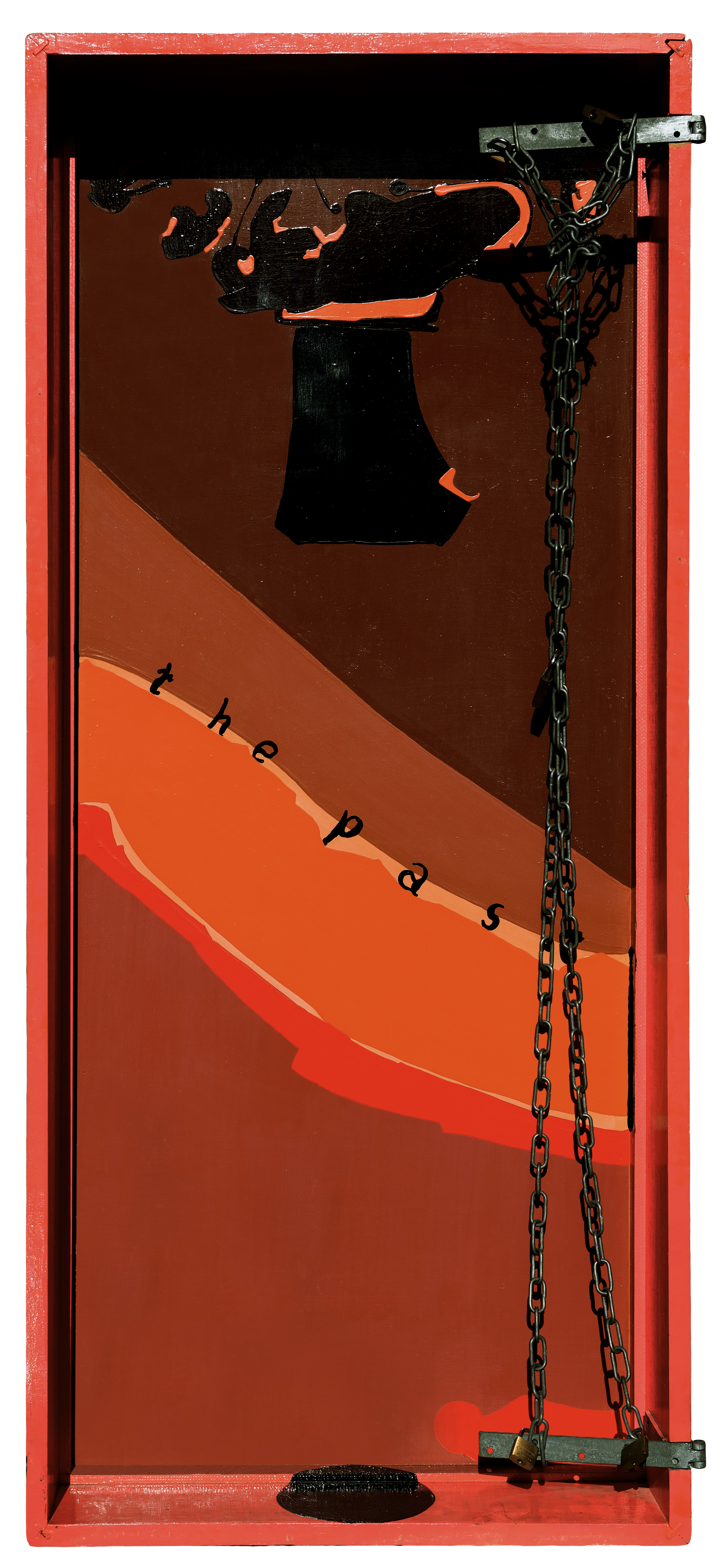 olej, lakier, płyta pilśniowa, kłódka, łańcuch