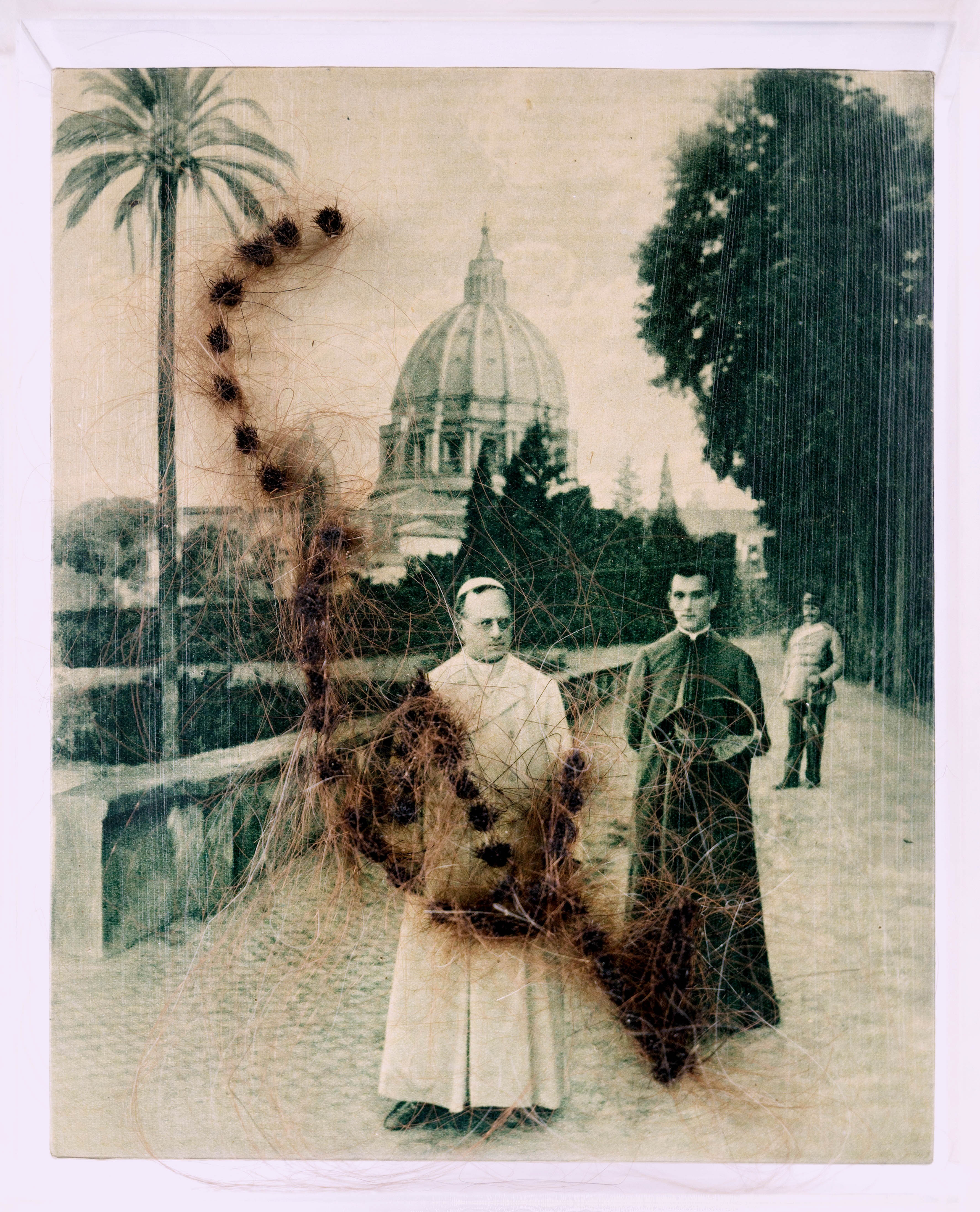 asamblaż, fotografia, taśma klejąca, papier