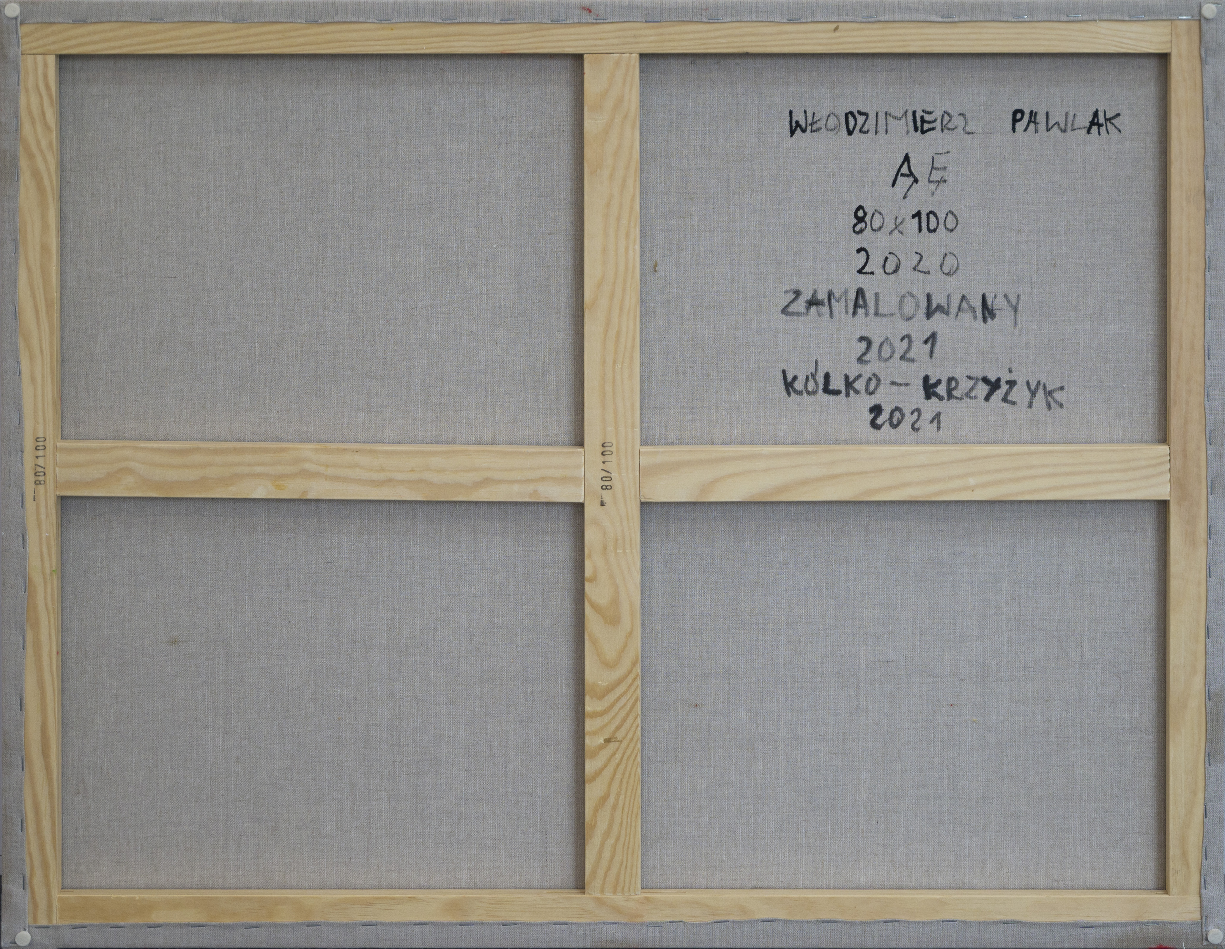 sygn. na odwrociu: WŁODZIMIERZ PAWLAK | Ą Ę | 80 x 100 | 2020 | ZAMALOWANY | 2021 | KÓŁKO - KRZYŻYK | 2021