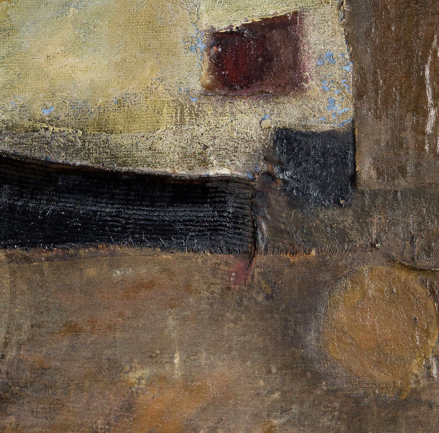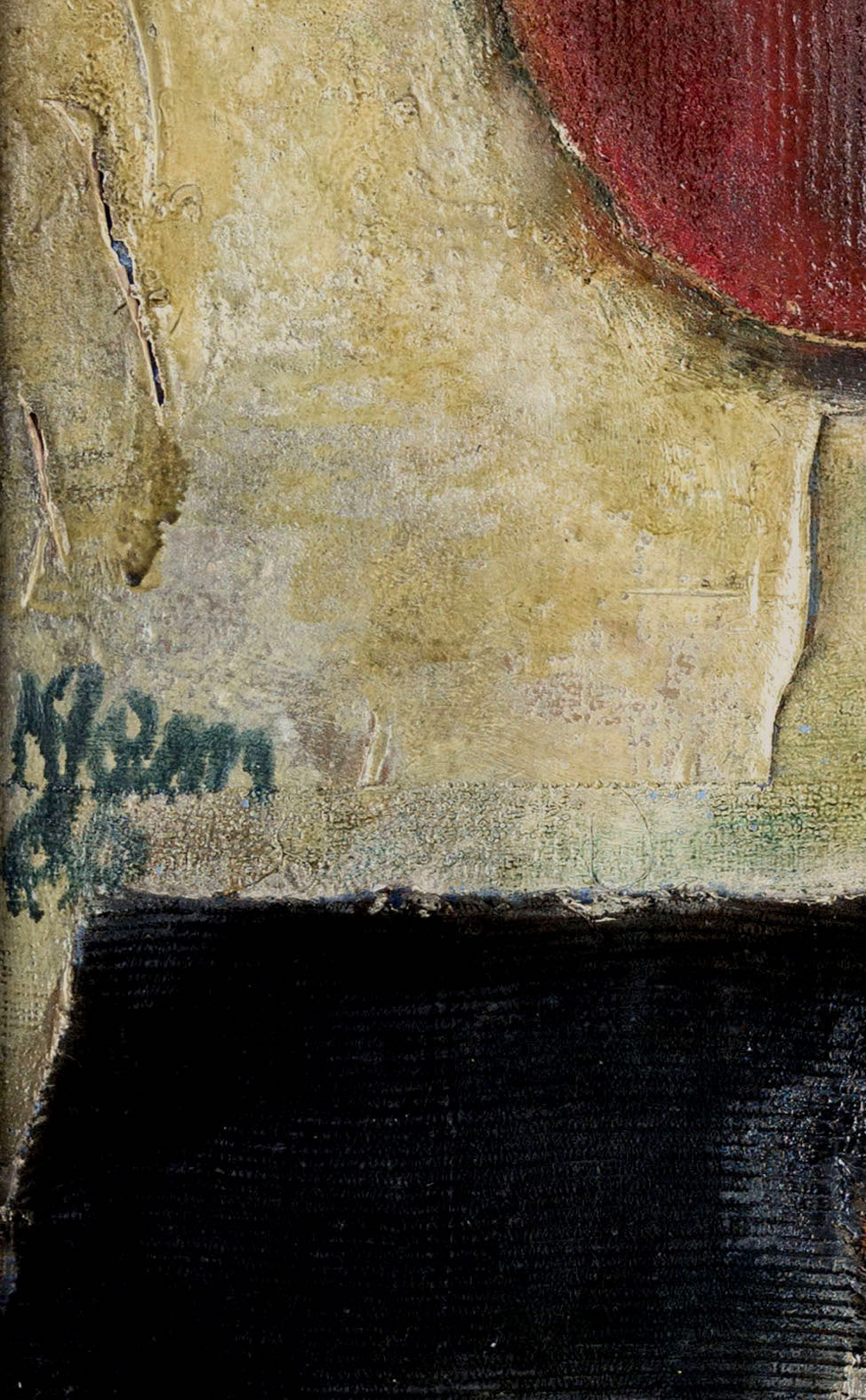 olej, kolaż, tkanina, płyta