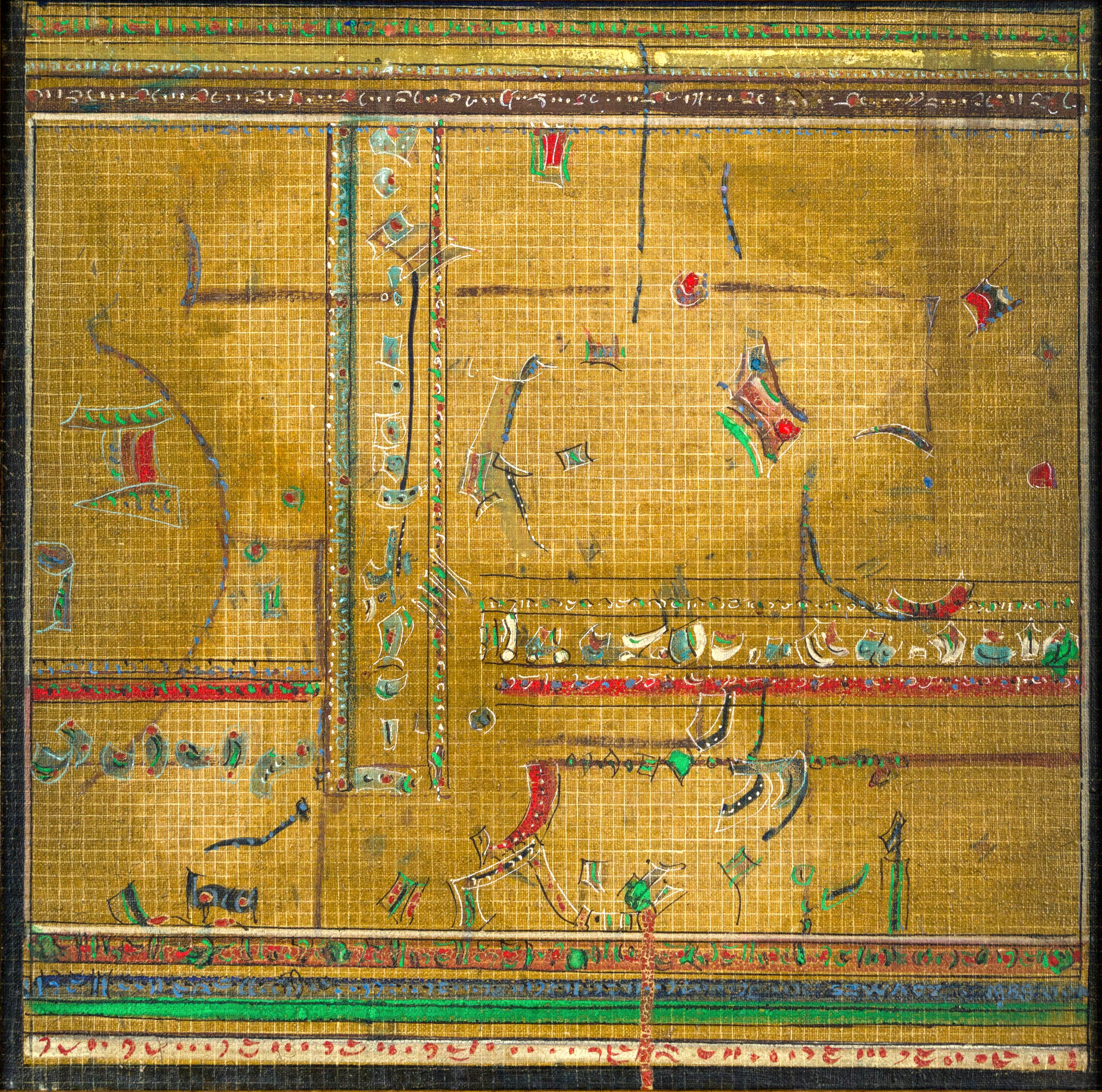 technika mieszana (akryl, złoto płatkowe), płótno