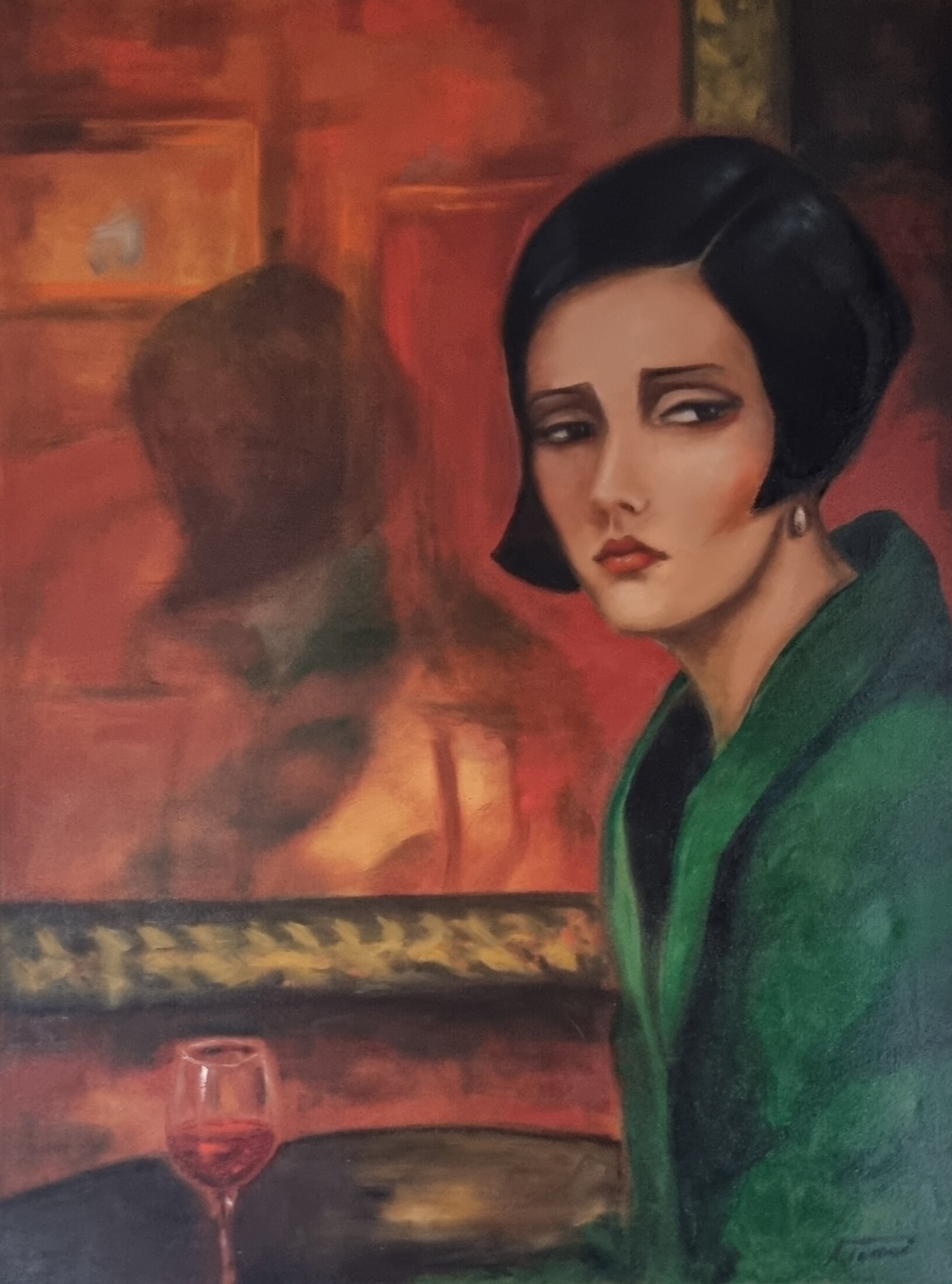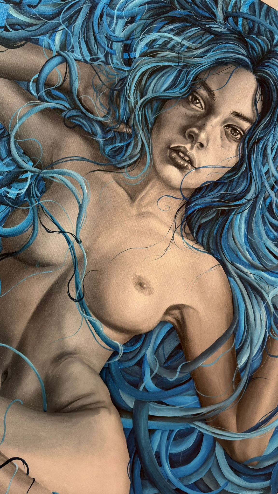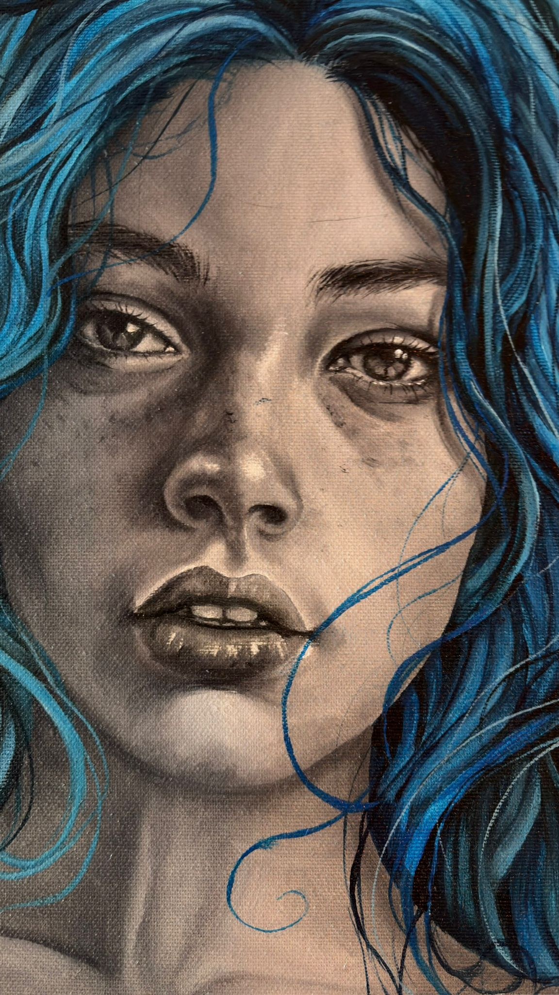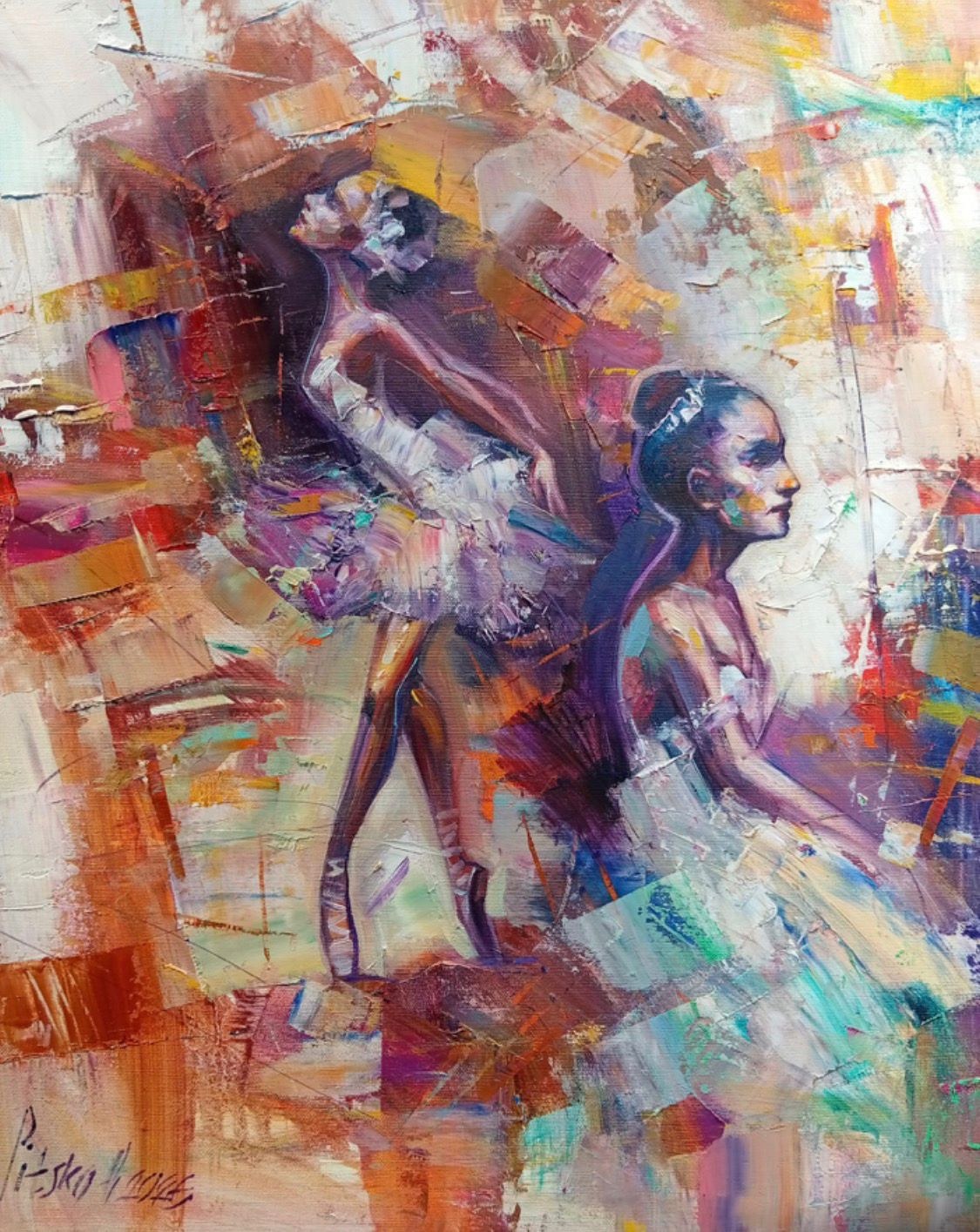 Zabezpieczony matowym werniksem i naciągniętym na sosnowe krosno malarskie.