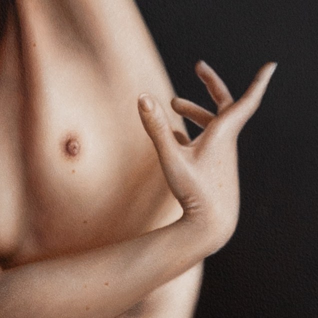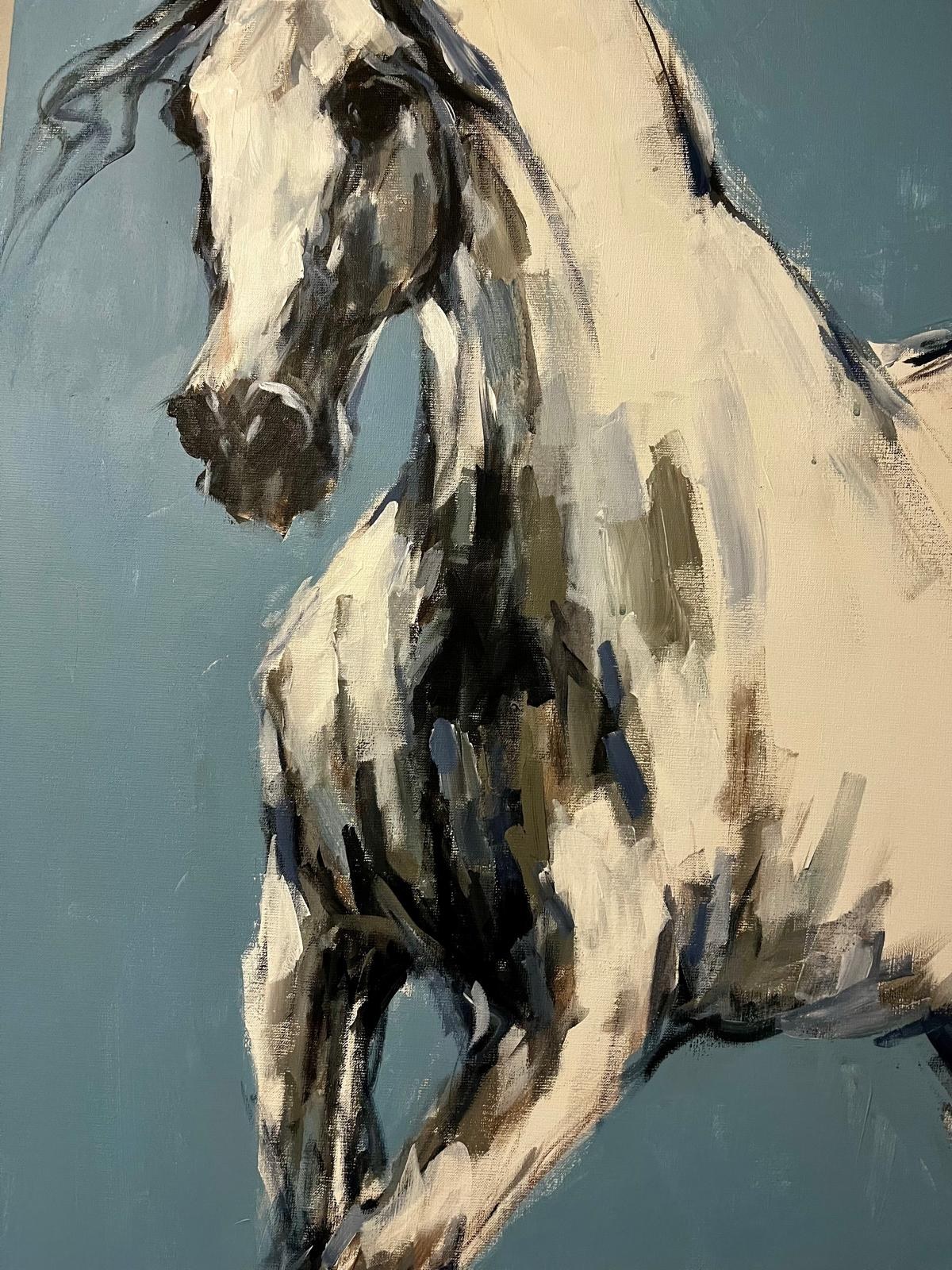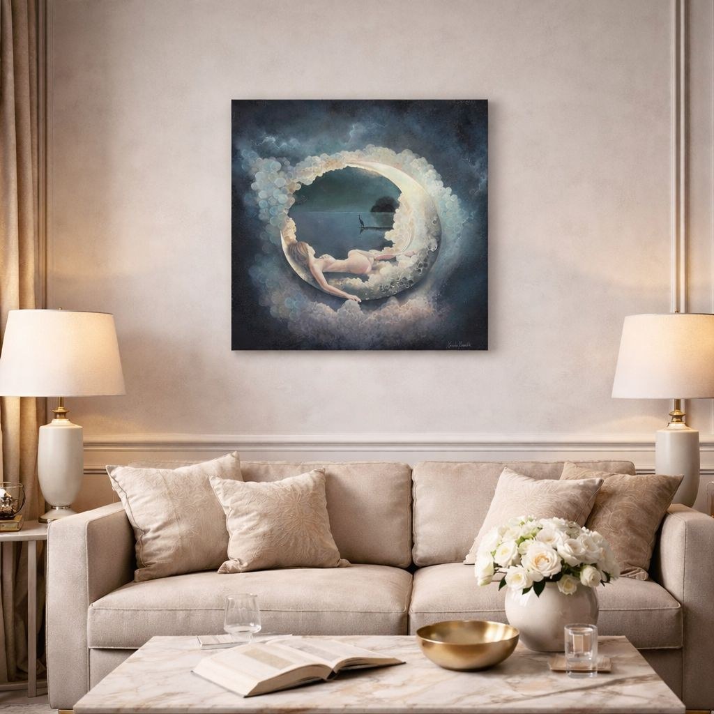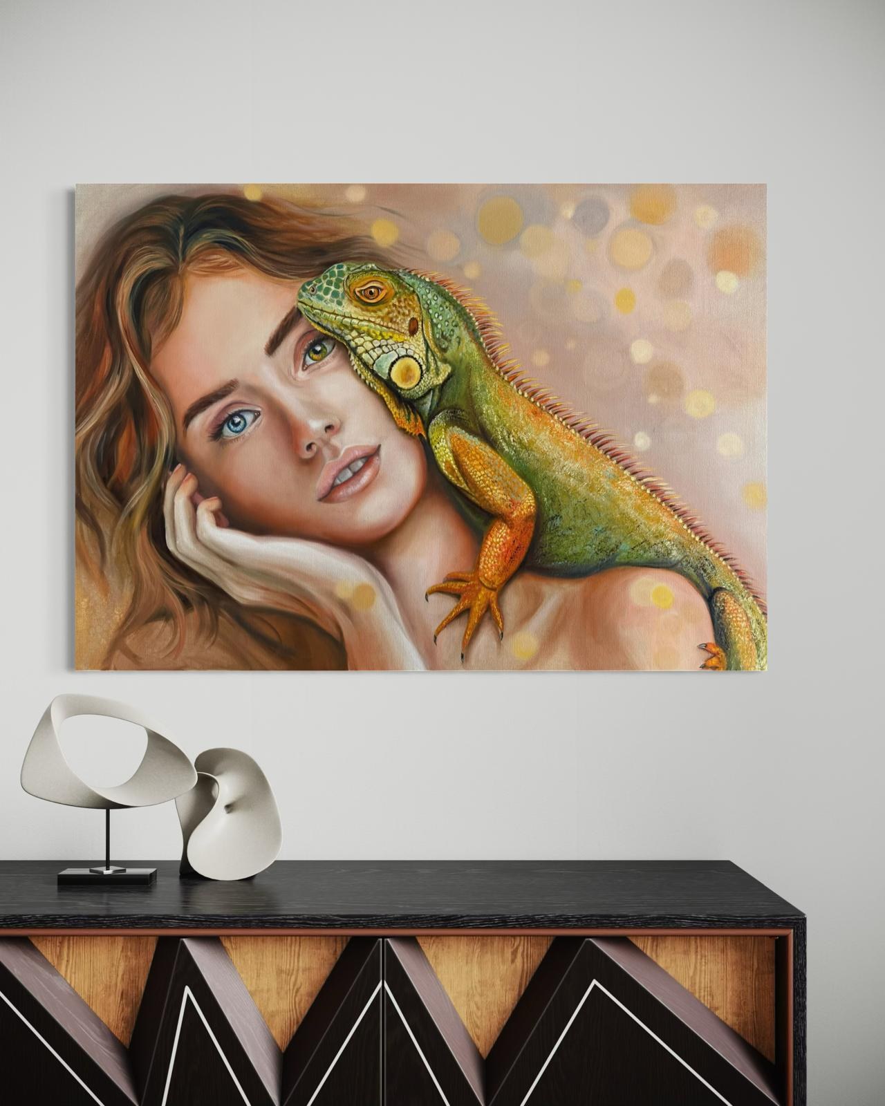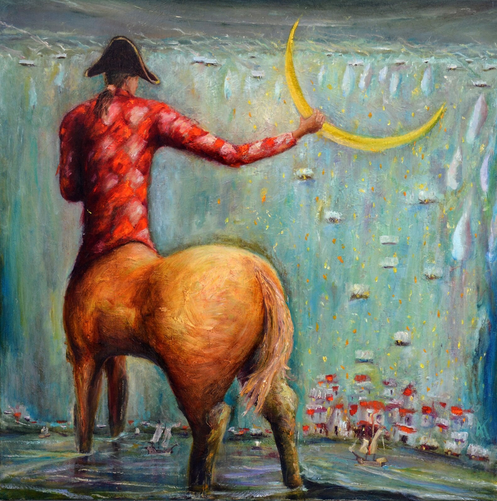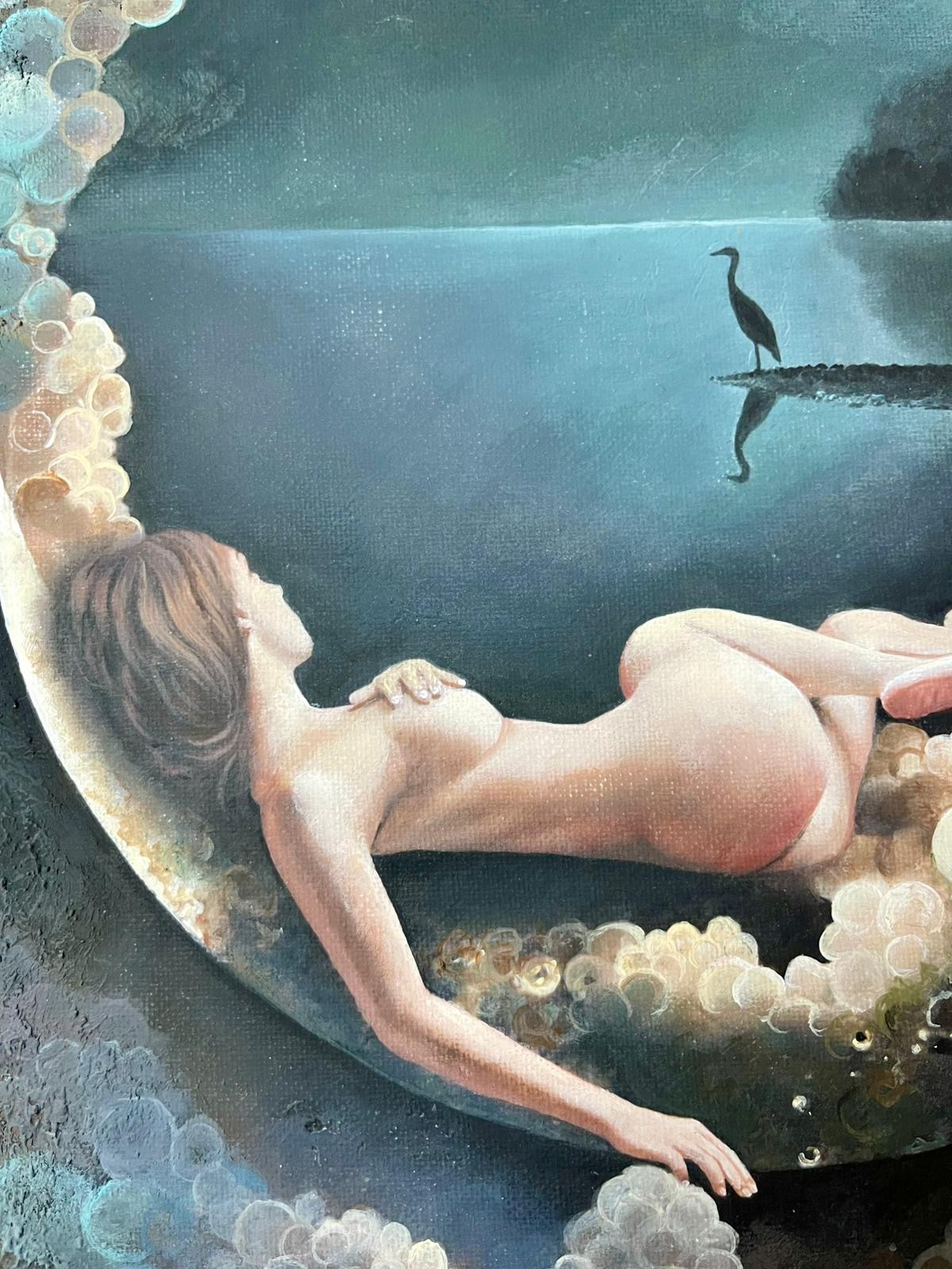Zabezpieczony matowym werniksem i naciągniętym na sosnowe krosno malarskie.