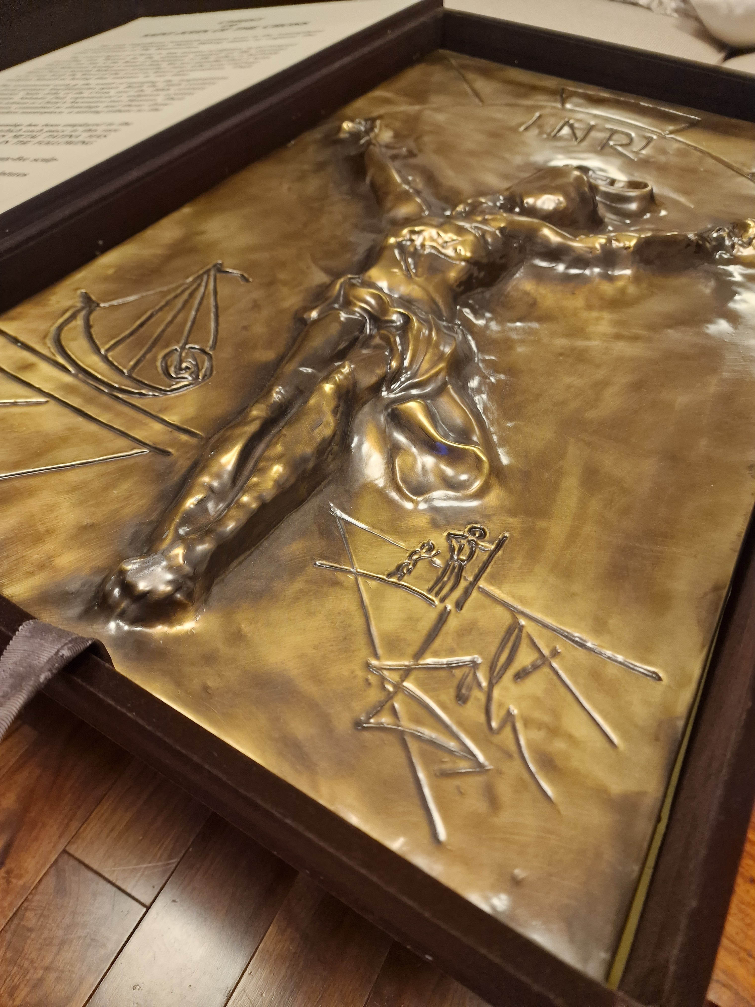 Płaskorzeźba w ekskluzywnym etui z tłoczoną złotem tytulaturą, wizerunkiem Chrystusa oraz sygnaturą Dalego.