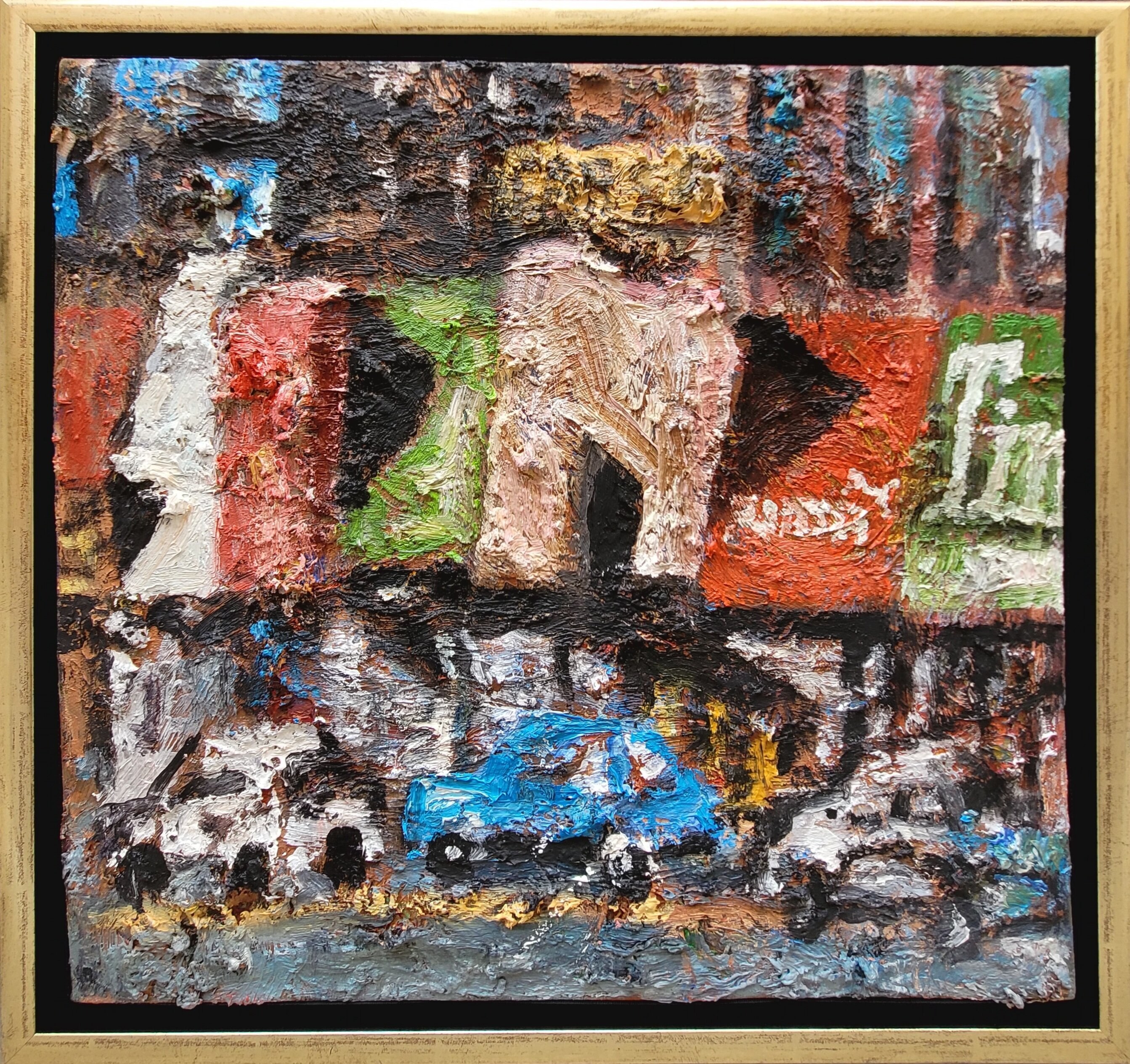Olej, płótno (gruba faktura), 45 x 42 cm, plus oprawa