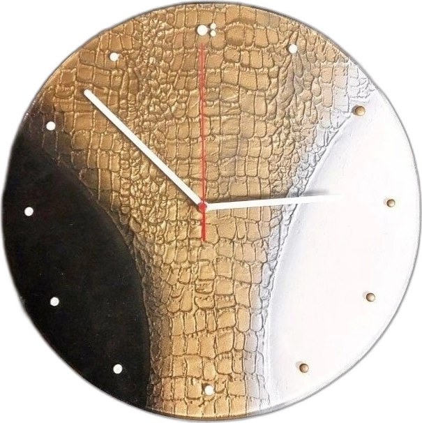 Zegar z żywicy epoksydowej, zatopiona struktura gipsowa.