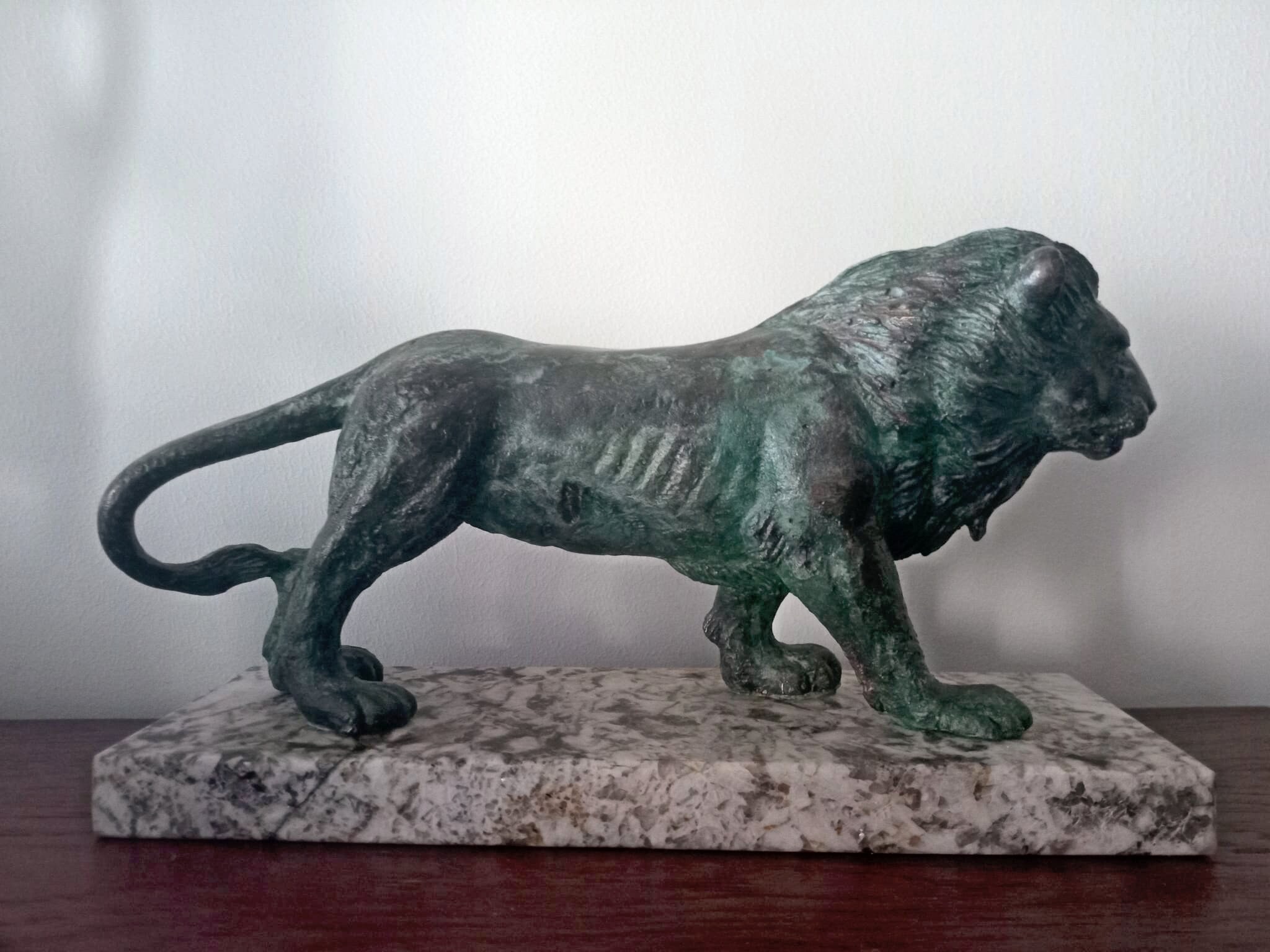Brąz patynowany, podstawa z trawertynu, wys. 29,5 cm, razem z podstawą ok. 40 cm