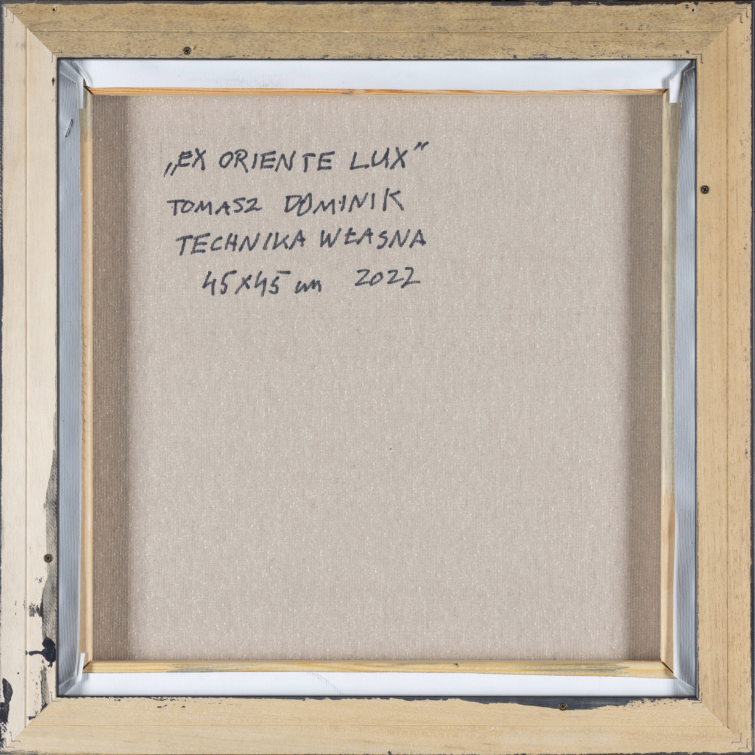 sygn. na odwrocie na płótnie: „EX ORIENTE LUX” | TOMASZ DOMINIK | TECHNIKA WŁASNA | 45 x 45 cm 2022