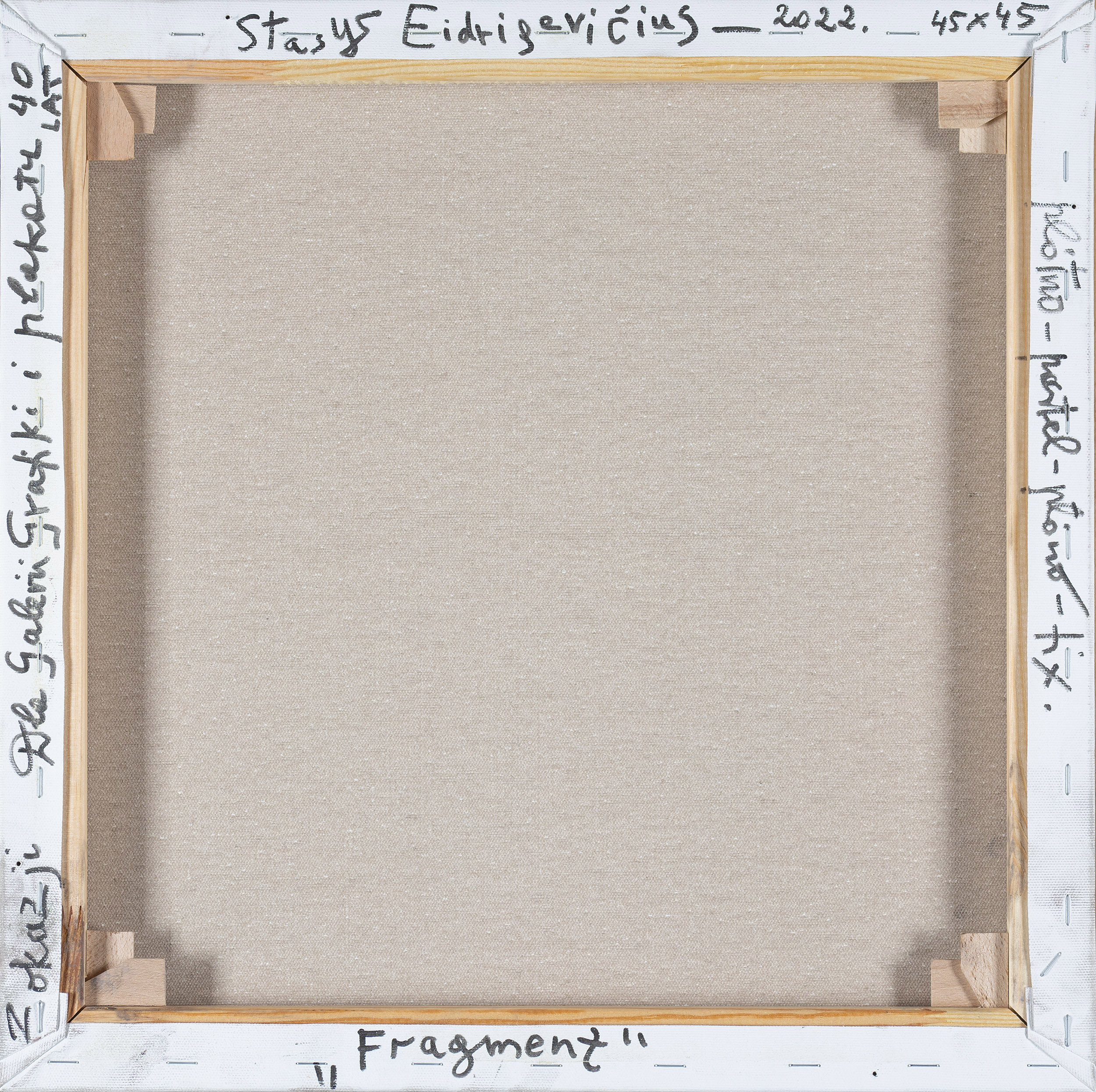 na odwr. na płótnie zawiniętym na krosno: l.: Z okazji Dla Galerii Grafiki i plakatu 40 | LAT, g.: Stasys Eidrigevičius – 2022. 45 x 45, p.: płótno – pastel – płótno...