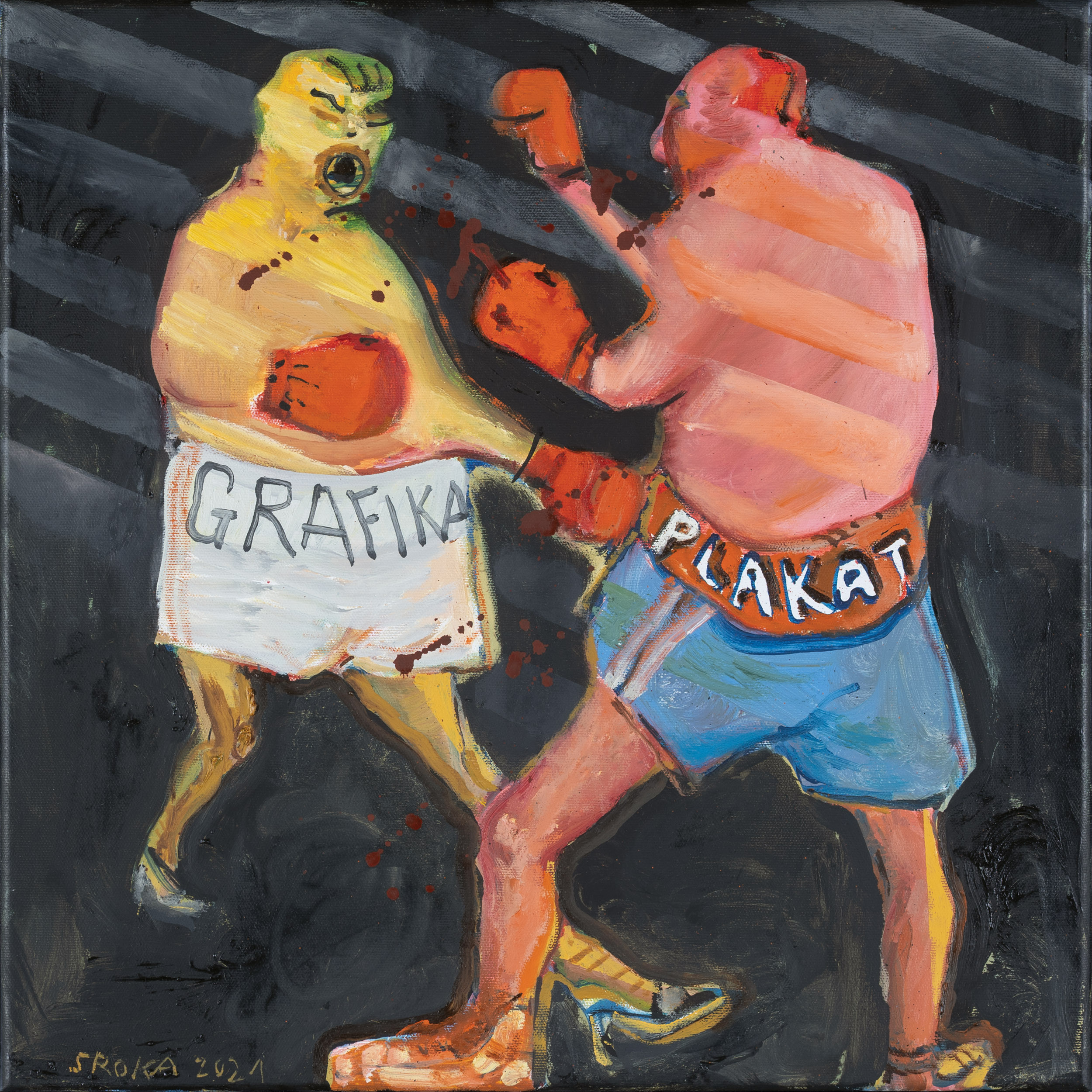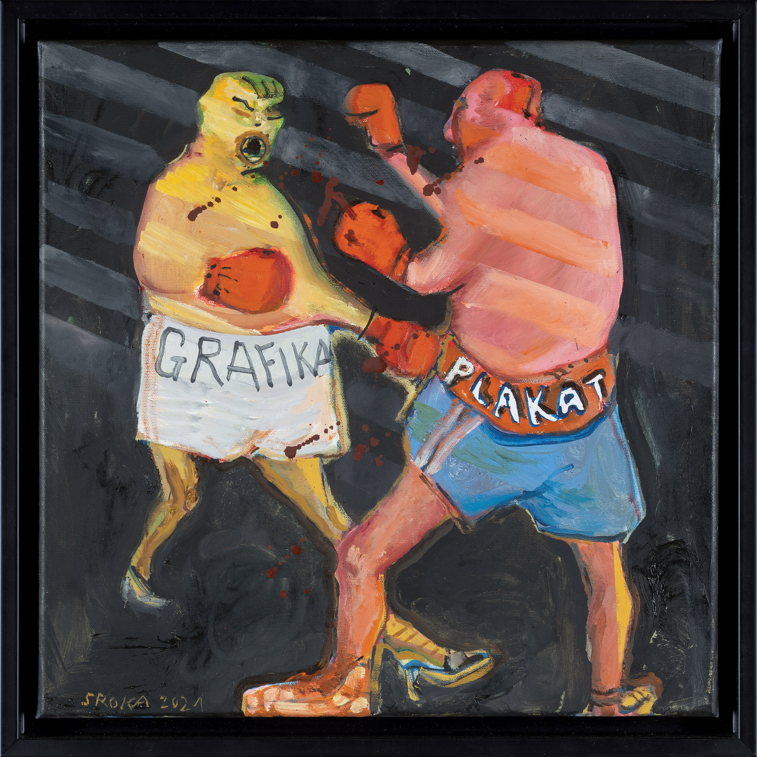 na odwr. na płótnie: JACEK | SROKA, obok: 27K83 | 2021, niżej: CZEMPIONAT | KOEDUKACYJNY | 45 RUNDA