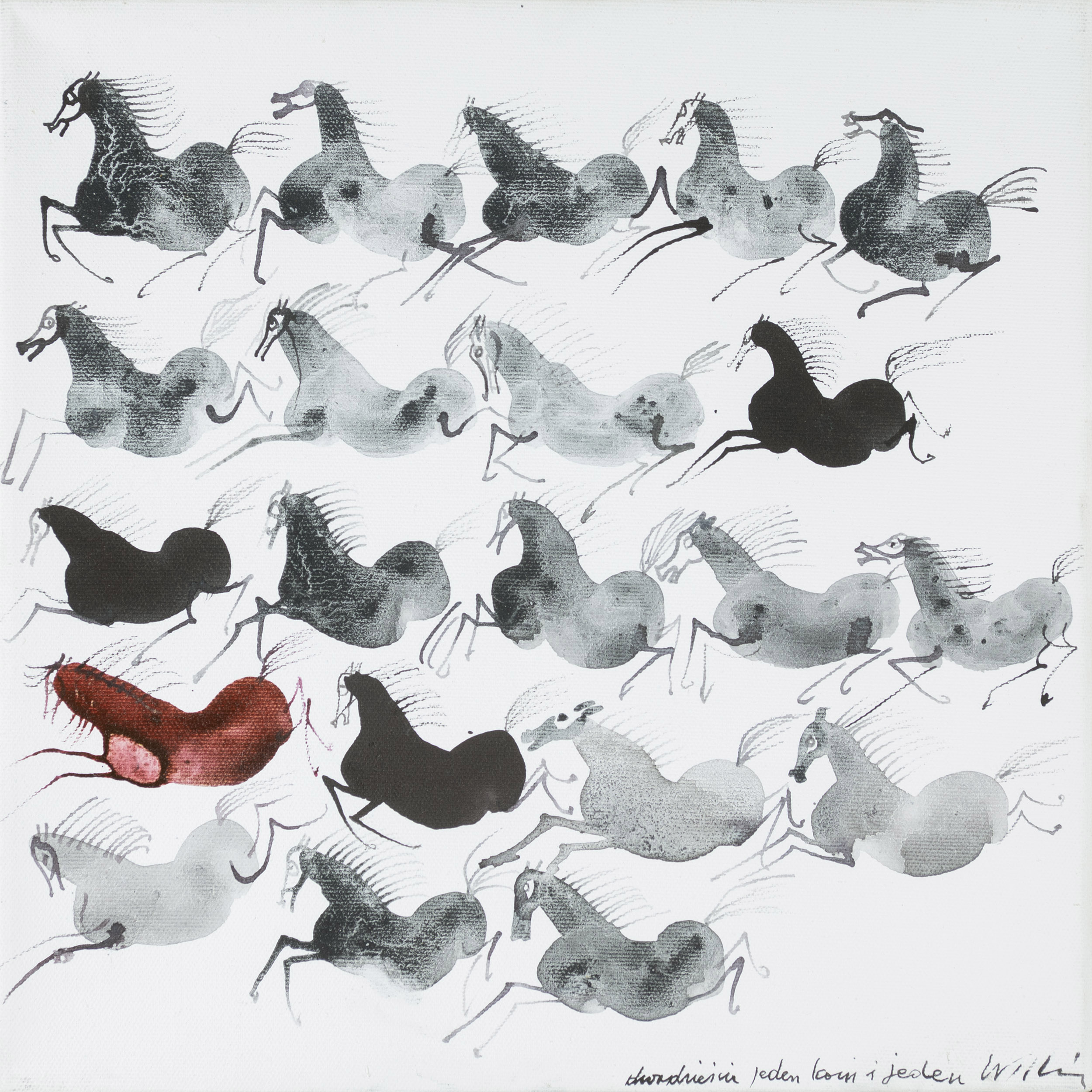 sygn. p.d.: dwadzieścia jeden koni i jeden, obok: Wilkoń